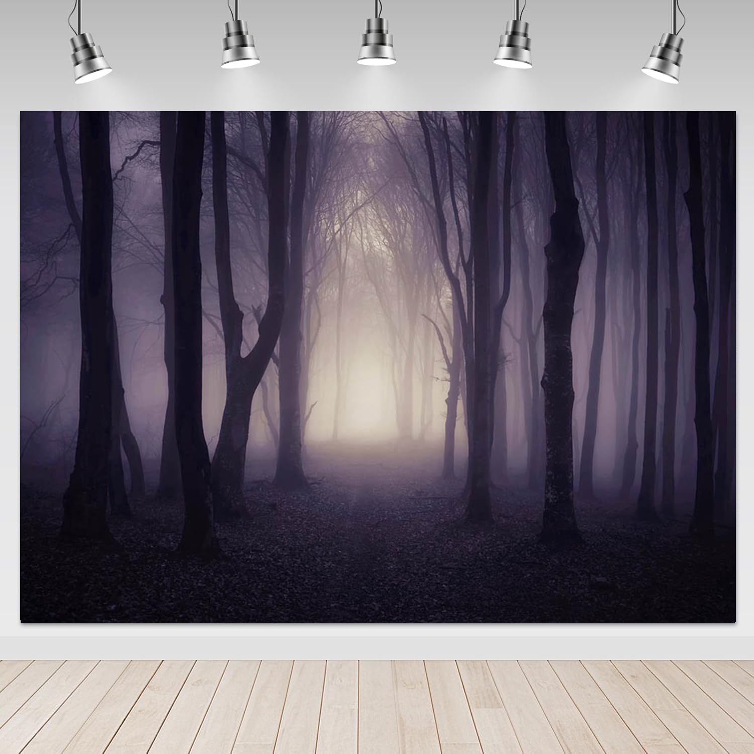 Mocsicka 7x5ft Halloween Backdrop Misty Woods Dark Gloomy Forest Vampire Witch Wizard Party Background Halloween Night Ghost Photography Backdrops