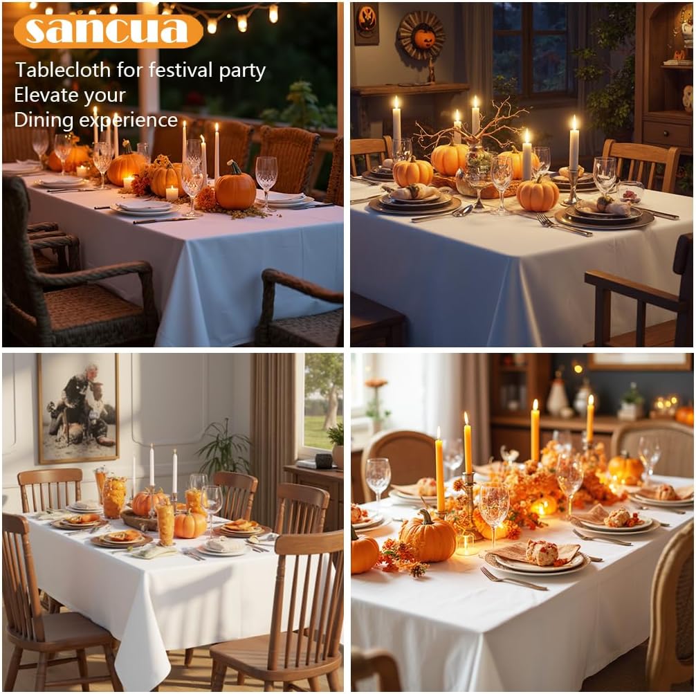 sancua Rectangle Tablecloth - 60 x 84 Inch - Stain and Wrinkle Resistant Washable Polyester Table Cloth, Decorative Fabric Table Cover for Dining Tables, Buffet Parties and Camping, White
