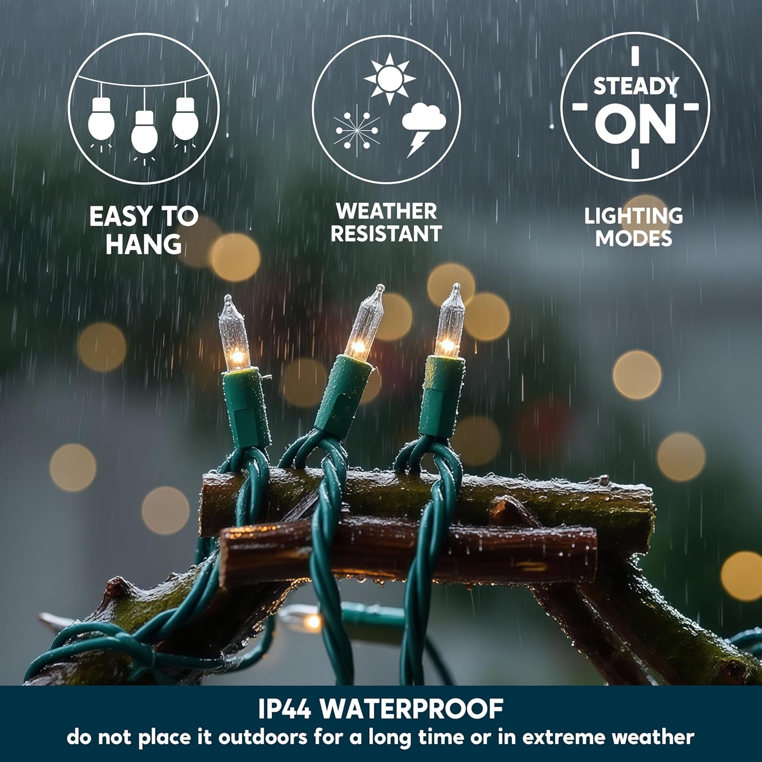 - UL588 CERTIFIED FOR INDOOR & OUTDOOR SAFETY - Ensure holiday peace of mind with our string lights, rigorously tested to meet US UL safety standards. The IP44 waterproof design and durable construction withstand rain and snow, making them perfect for Christmas tree decorations, garden, patio, and year-round use.