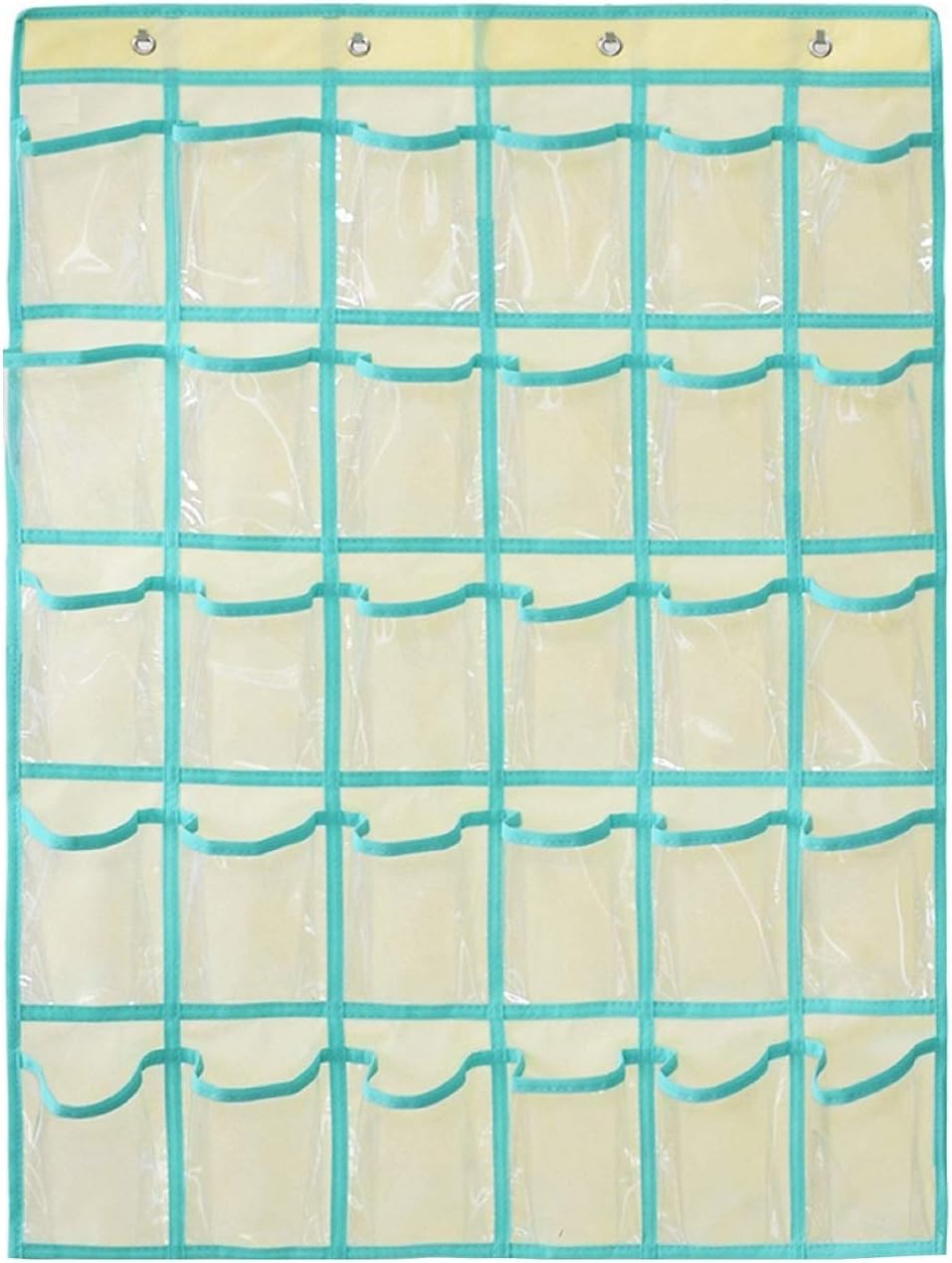 Classroom Pocket Chart for Phone Calculator Holder Over The Door Hanging Closet Jewelry Organizer with 30 Clear Pockets (BEIGE)