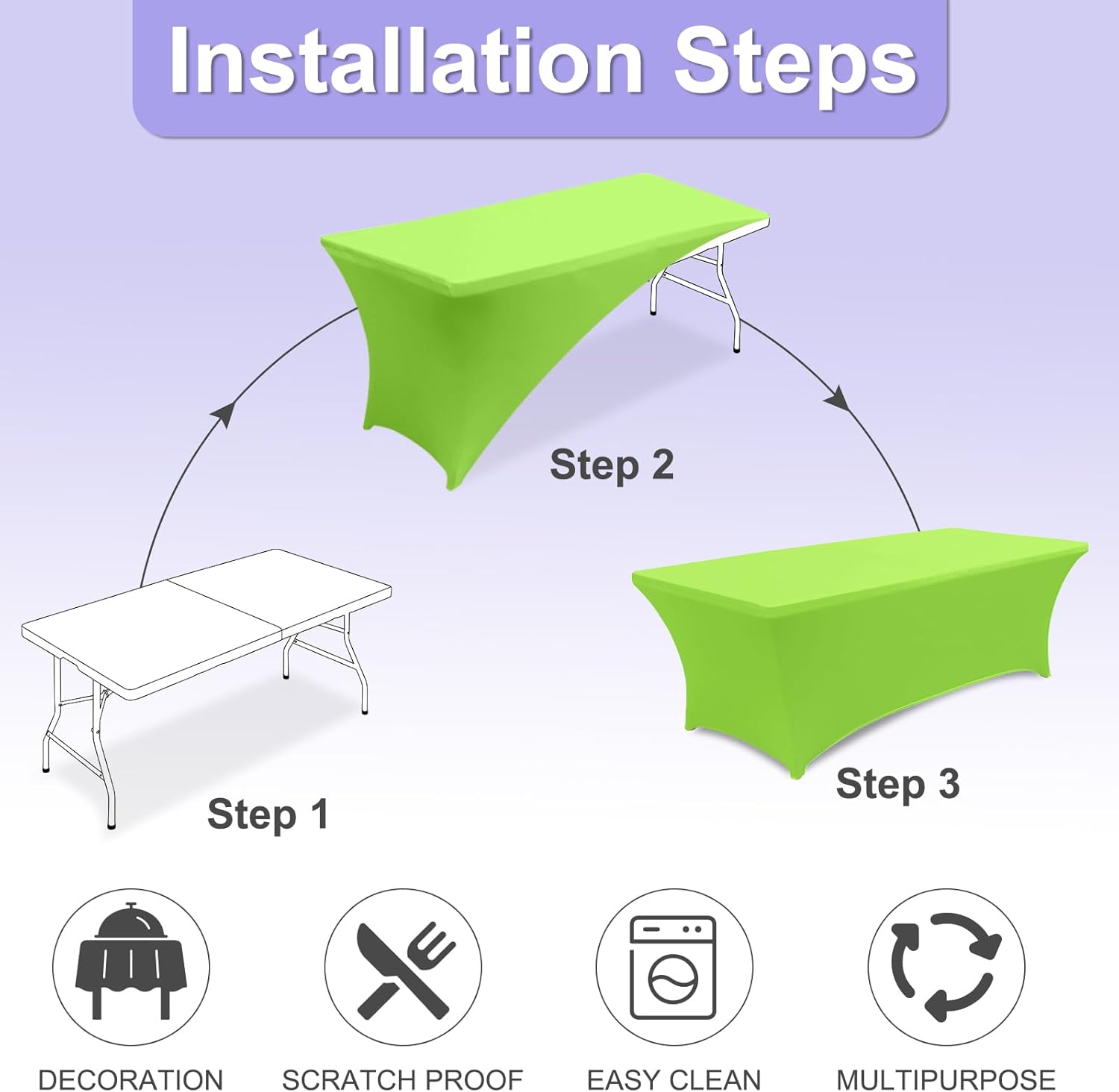 - 3.Which One Should You Choose?: Whether you're using for everyday use in your home or in commercial establishments such as restaurants, hotels and cafes. Our inexpensive rectangle spandex table covers which have the size of 4FT, 5FT, 6FT, 8FT and multicolor will match your table and decor perfectly. Table covers in multipacks are even more cost effective because after taking into account the cost of packaging and transportation.