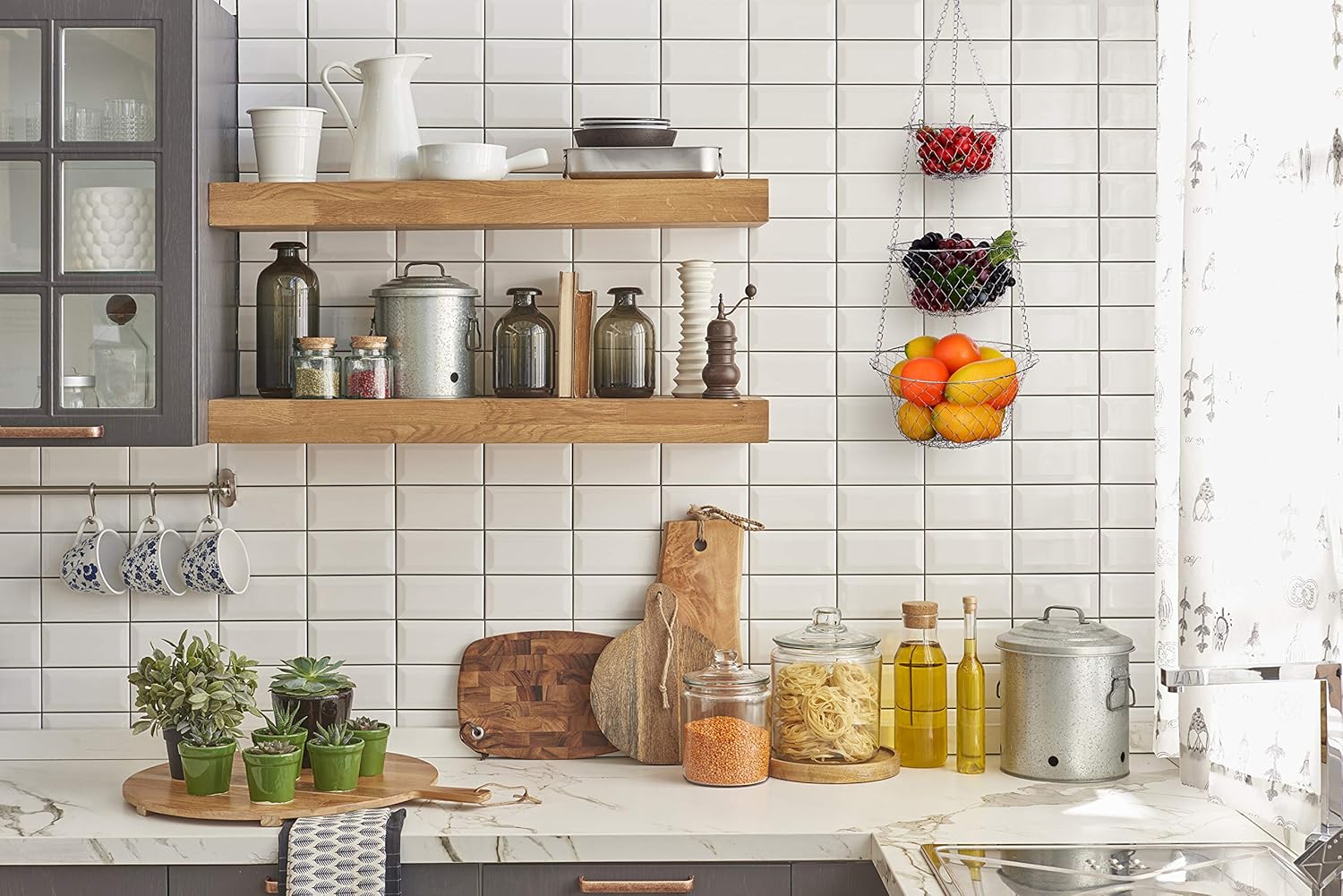 - Organization: The hanging baskets for kitchen is able to keep items organized and easily accessible. With three tiers, it provides ample storage for fruits, vegetables, toiletries, or other household items.