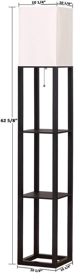 HomeFocus - Floor Lamp with Shelves,Shelf Floor Lamp with LED Bulb,Bookshelf Corner Display Lamp for Living Room,Bedroom and Office,White Linen Shade,Rustic Wood,Black