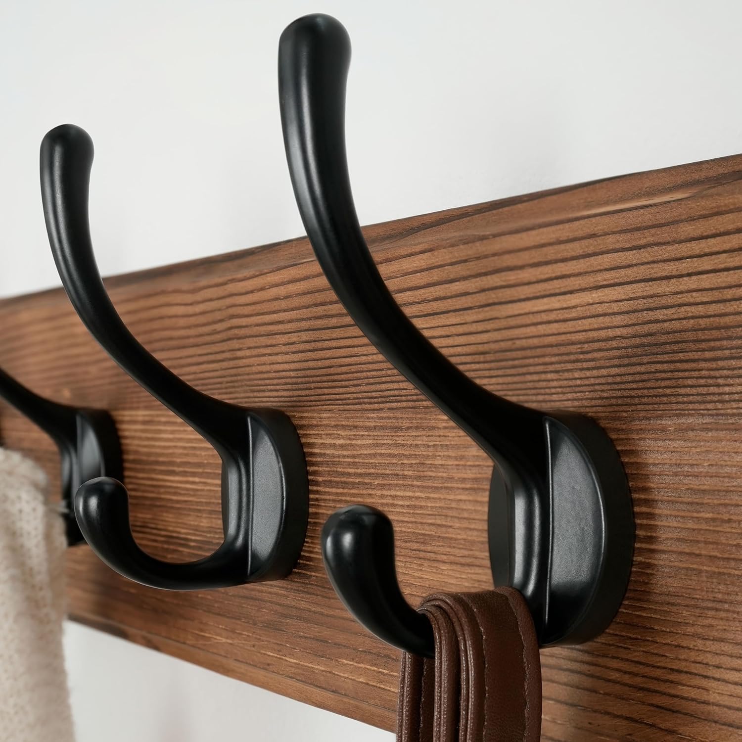 - Stylish rustic coat rack wall mount with unique aged farmhouse burnt wood finish.