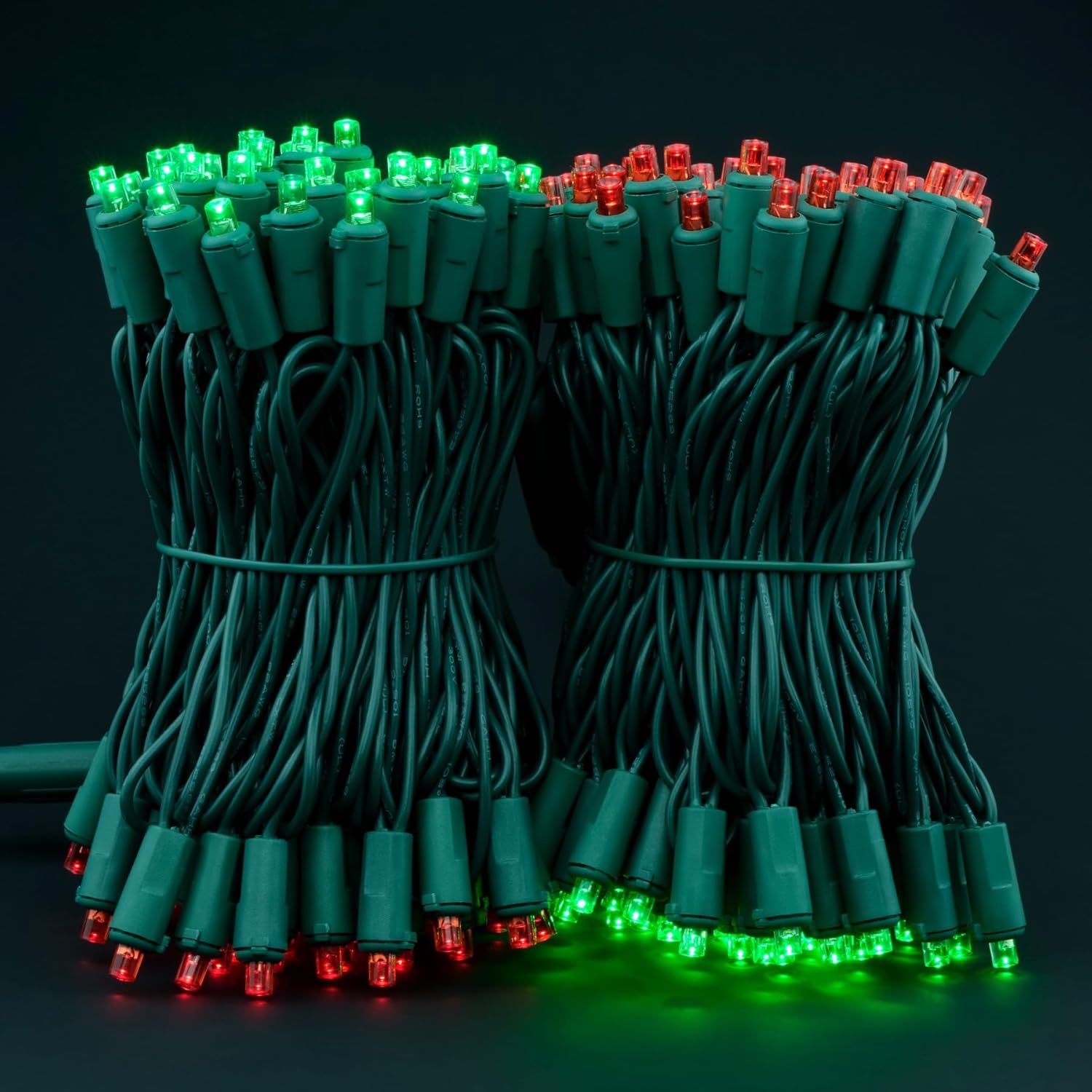 200 Count Red Green Wide Angle LED Christmas Lights, 66 ft Green Wire UL Certified Commercial Grade 5mm Holiday String Light Set (Red & Green)