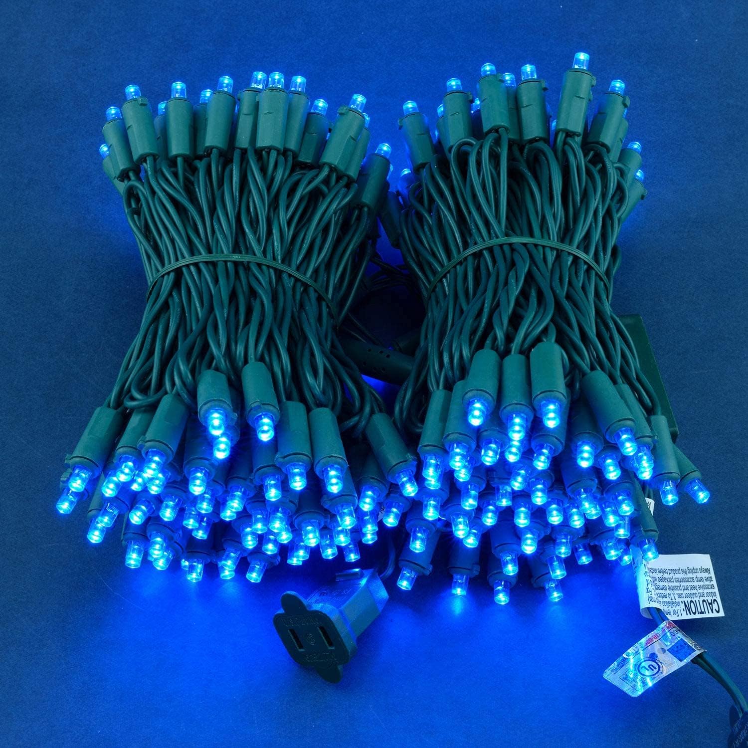 200 Count Blue Wide Angle LED Christmas Lights, 66 ft Green Wire UL Certified Commercial Grade 5mm Holiday String Light Set (Blue)