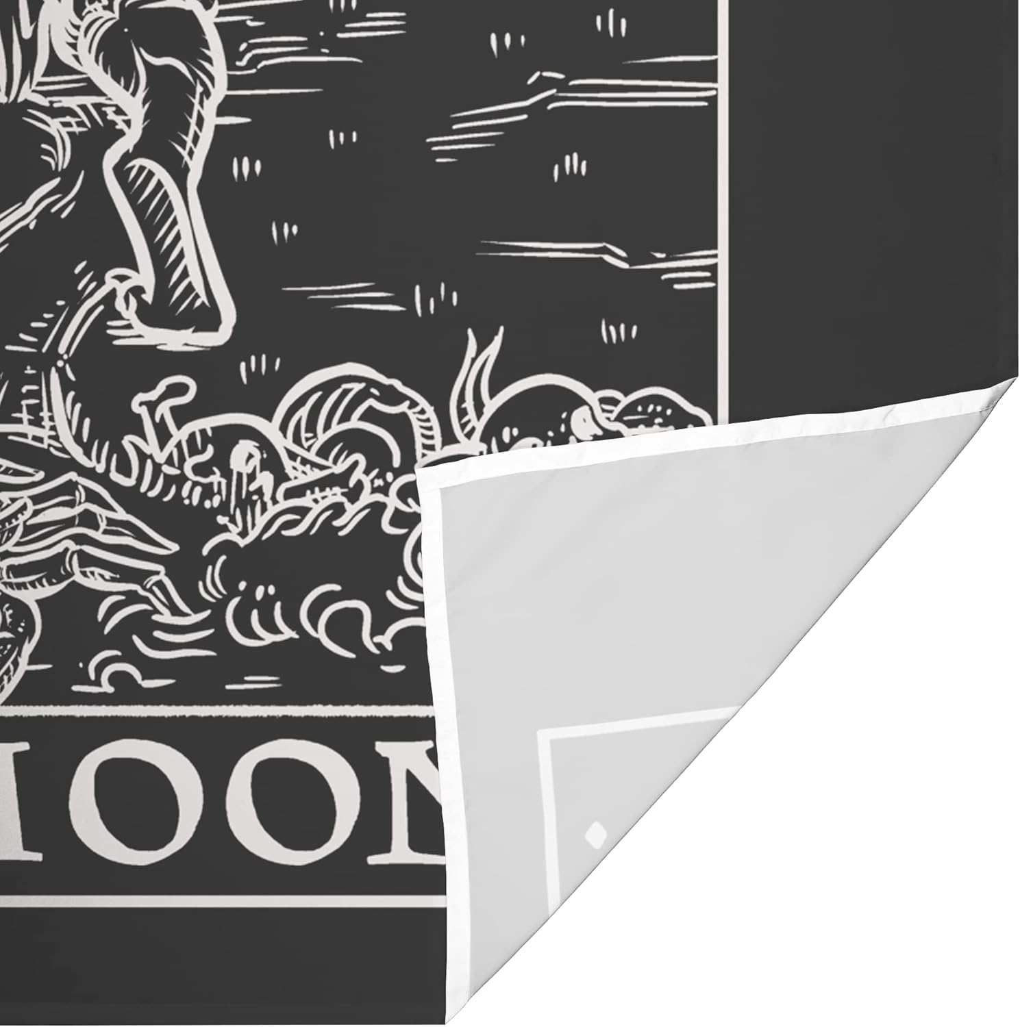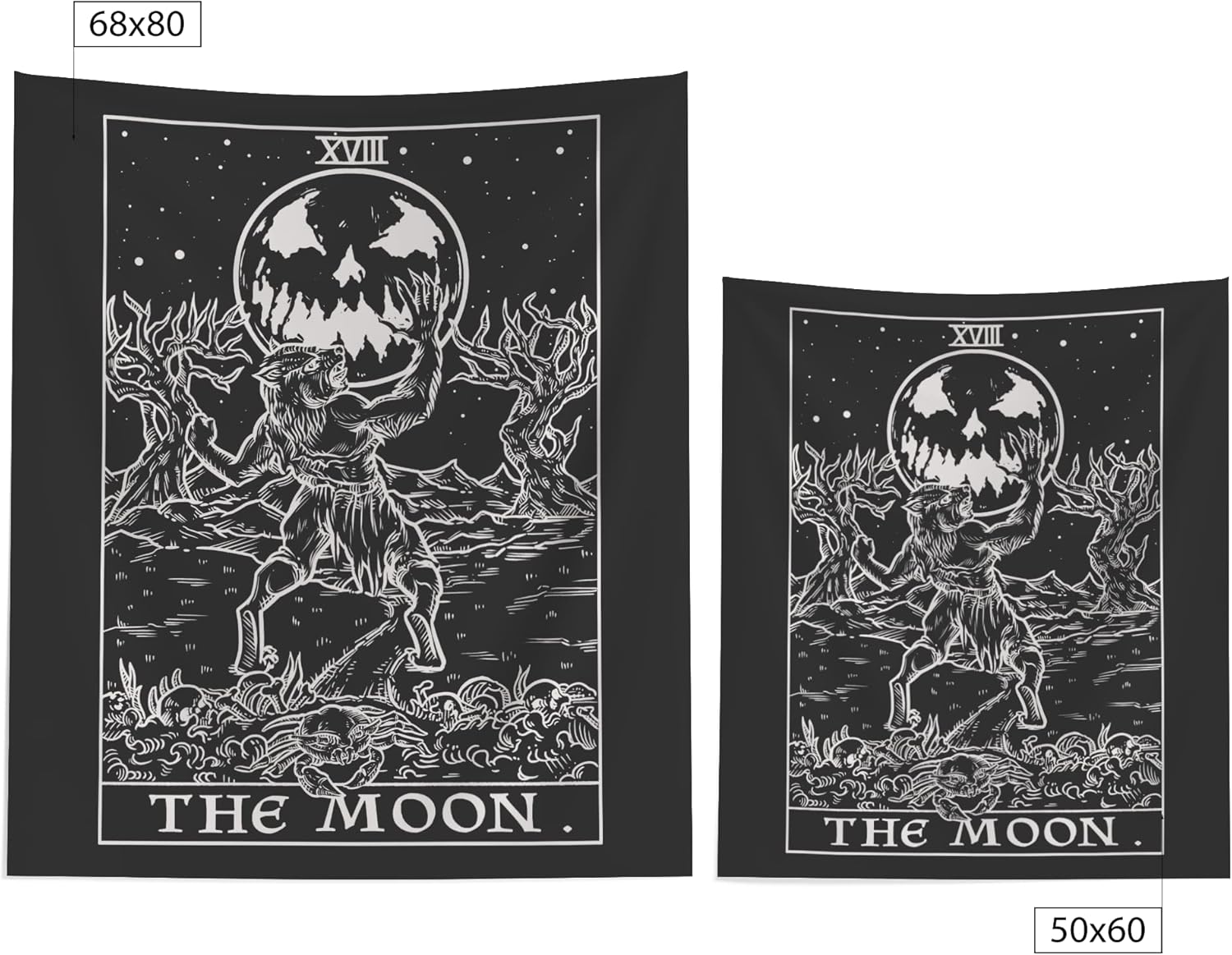 The Moon Tarot Card Tapestry (Black & White) - Werewolf - Gothic Halloween Home Decor Wall Hanging (60" x 50")