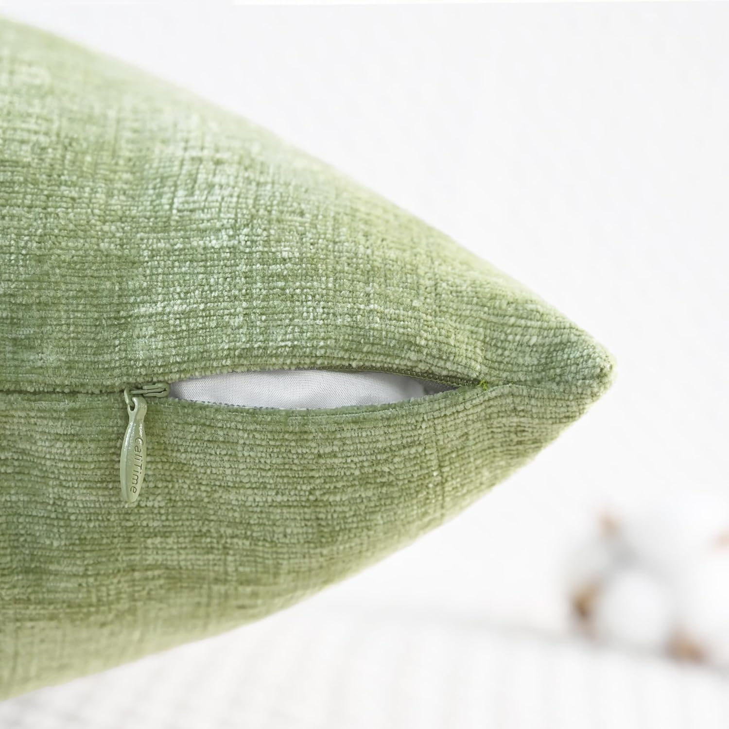 CaliTime Throw Pillow Covers Decorative 20 X 20 Inches Pack of 2 Cozy Chenille Cushion Cases for Couch Sofa Bed Living Room Home Sage Green