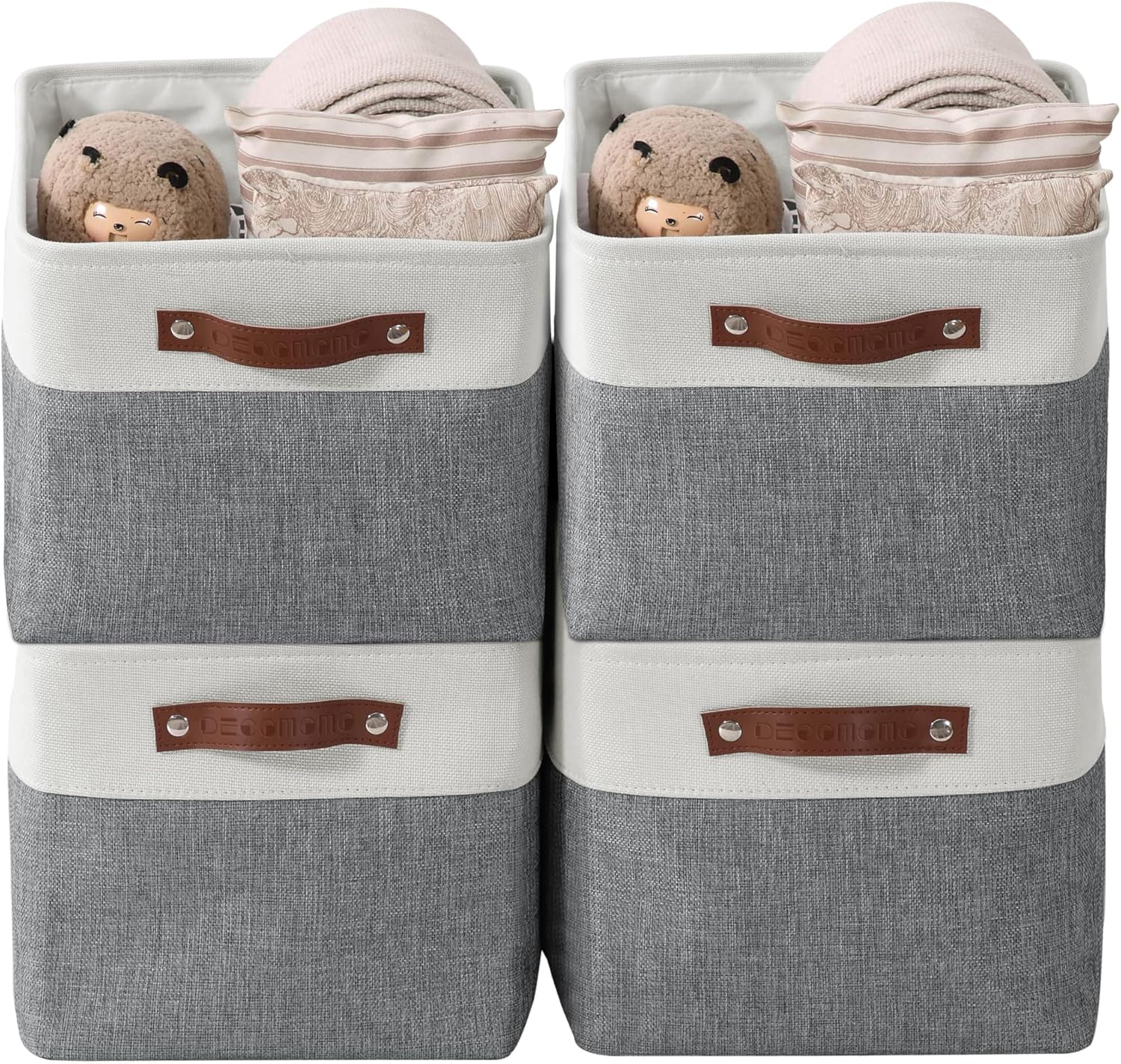 DECOMOMO Storage Bins Fabric Storage Baskets for Shelves, Linen Closet Organization Toys Nursery (Slate Grey and White, Large - 4 Pack)