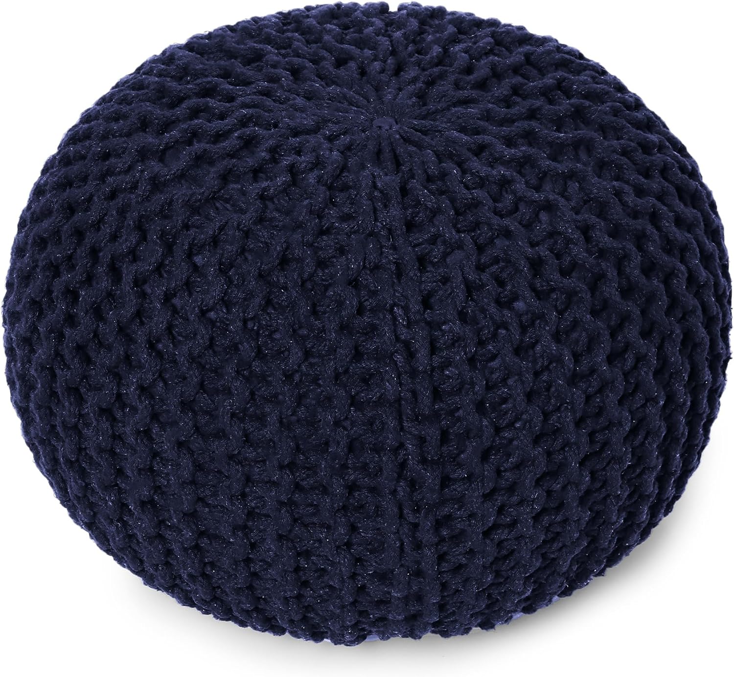 REDEARTH Round Pouf Foot Stool Bean Bag Ottoman - Cable Knitted Cord Boho Pouffe - Poof Accent Bean Bag - Handmade by Artisans for Living Room - Bedroom (19.5"x19.5"x14") - Navy Blue