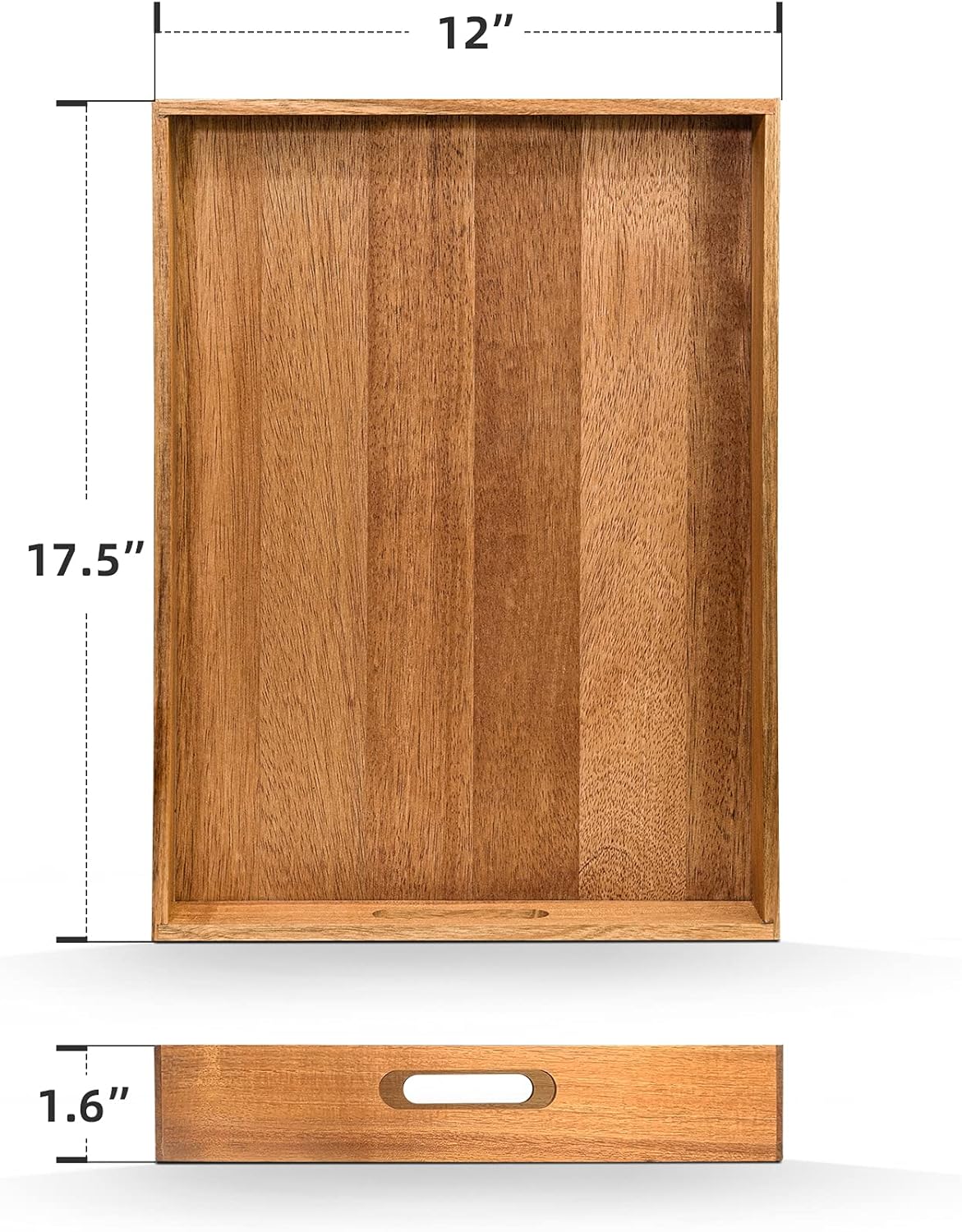 Acacia Wood Serving Tray with Handles (17 Inches) – Decorative Serving Trays Platter for Breakfast in Bed, Lunch, Dinner, Appetizers, Patio, Ottoman, Coffee Table, BBQ, Party –Great for Lap &Couch
