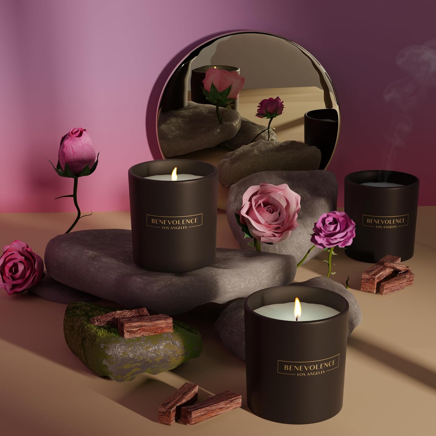 Benevolence LA Clearance Candles Rose & Sandalwood Scented Candle | Soy Candles, Black Candle for Home | Gifts for Women and Men | Home Fragrance | Aromatherapy | 6oz