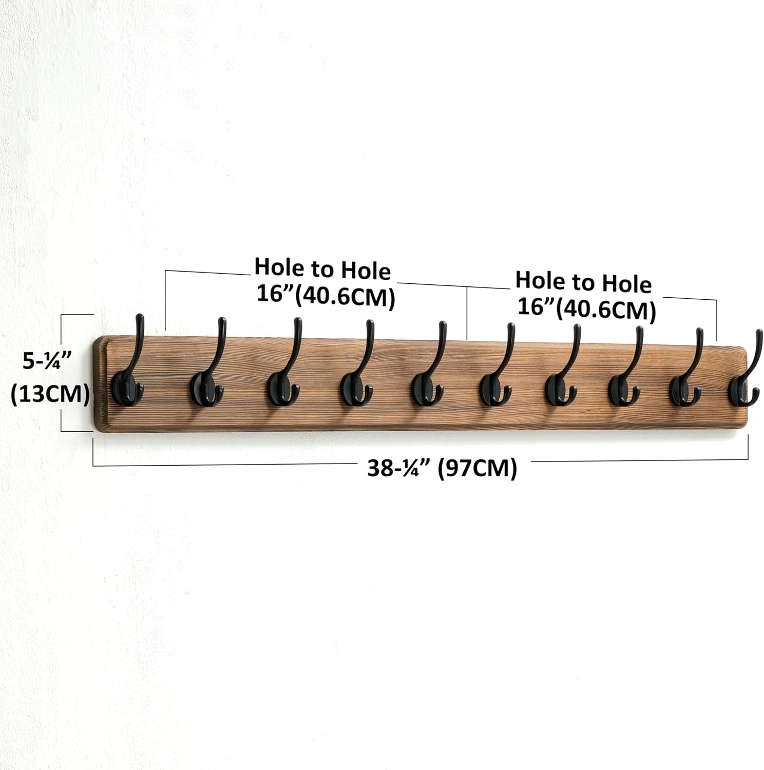 - 【38” LONG & AMPLE HANGING SPACE:】 Boasting a 38-1/4” long wood board with 10 dual hooks, this wall coat hanger offers an impressive amount of hanging space.