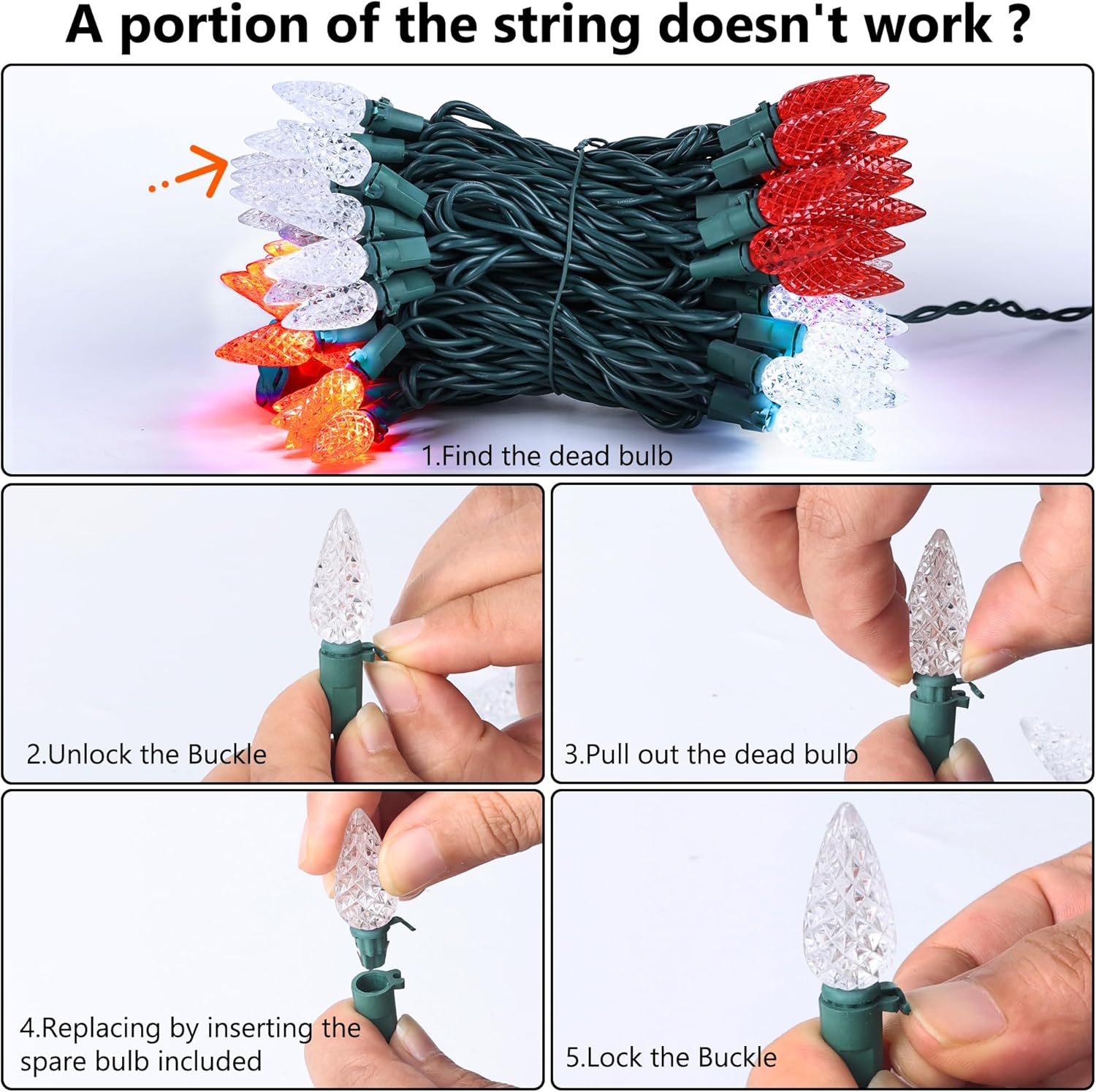 - Super Bright: Brighter than traditional incandescent string lights, make your lighting display bright and festive with these red & white christmas lights