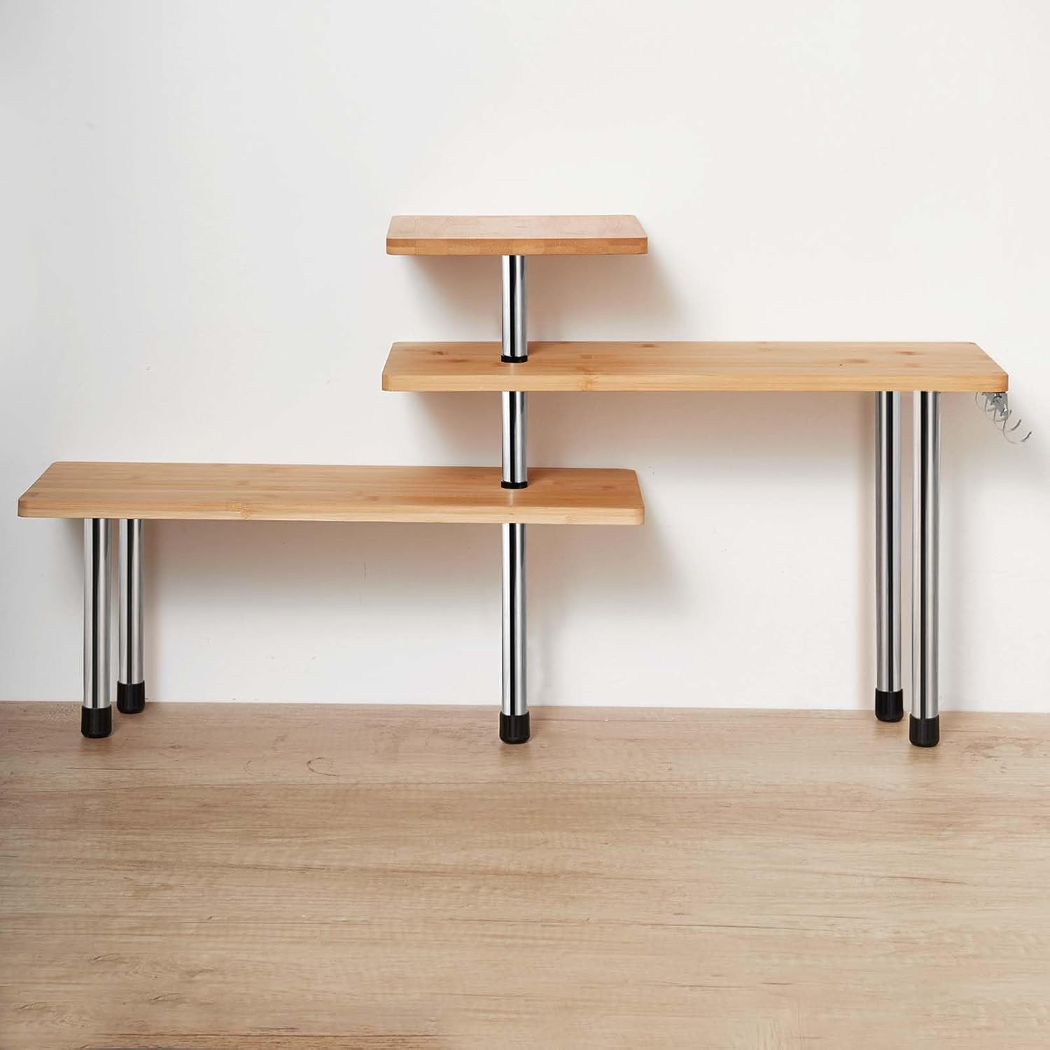 - Bamboo & Stainless Steel Construction: Crafted from high-quality bamboo with sturdy stainless steel legs, this shelf is built to last