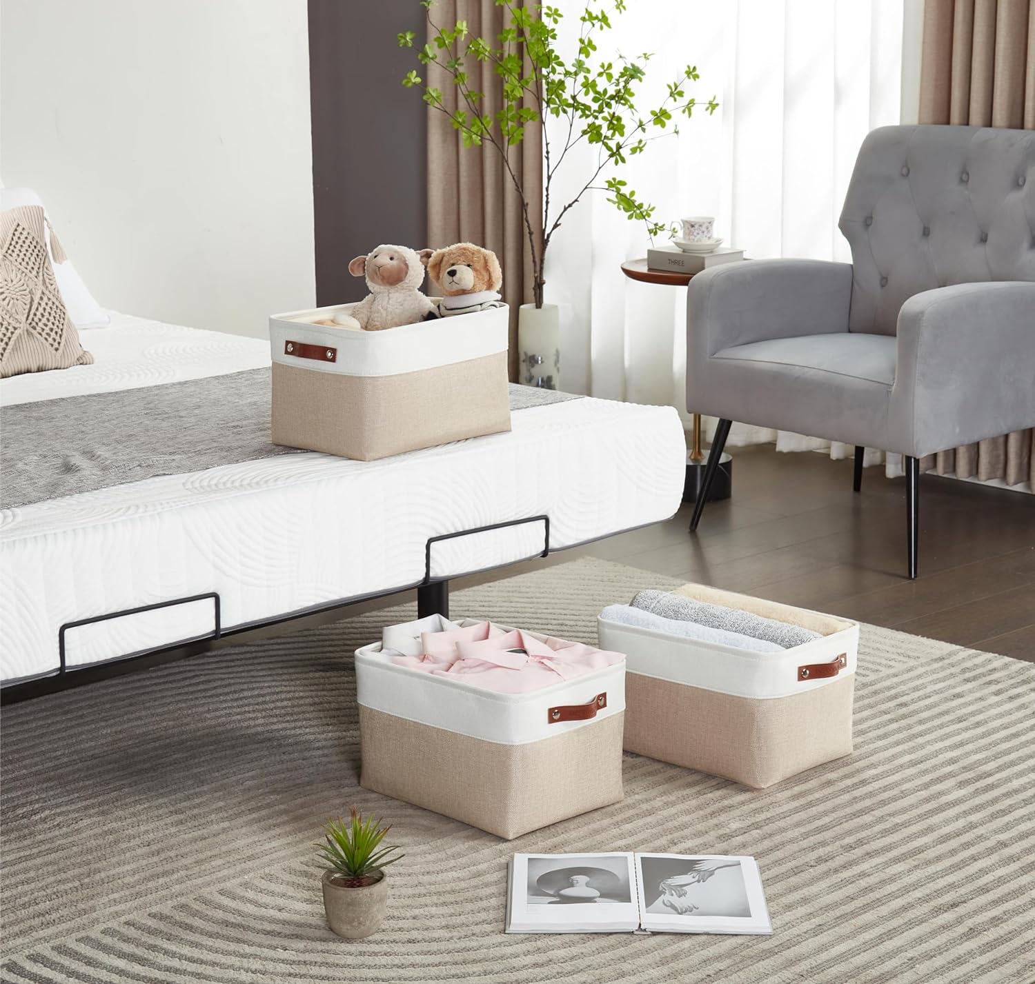 - Multi-purpose: These organizer bins effortlessly handle all your storage needs - perfect for shelves, clothing, linen closets, baby nurseries, kids' playrooms, and storing towels, blankets, bedsheets, and more to keep your space tidy.