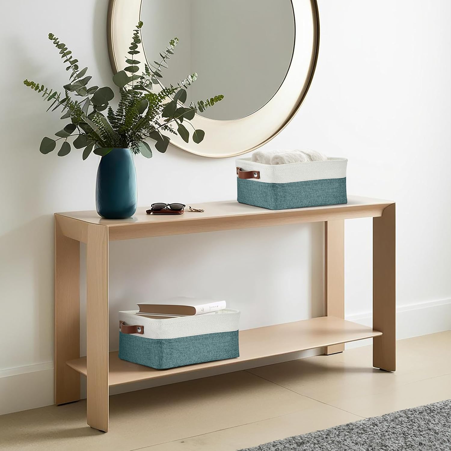 DECOMOMO Small Storage Basket, Closet Storage Bins, Baskets for Organizing Shelves (Teal & White, Small - 6 Pack)