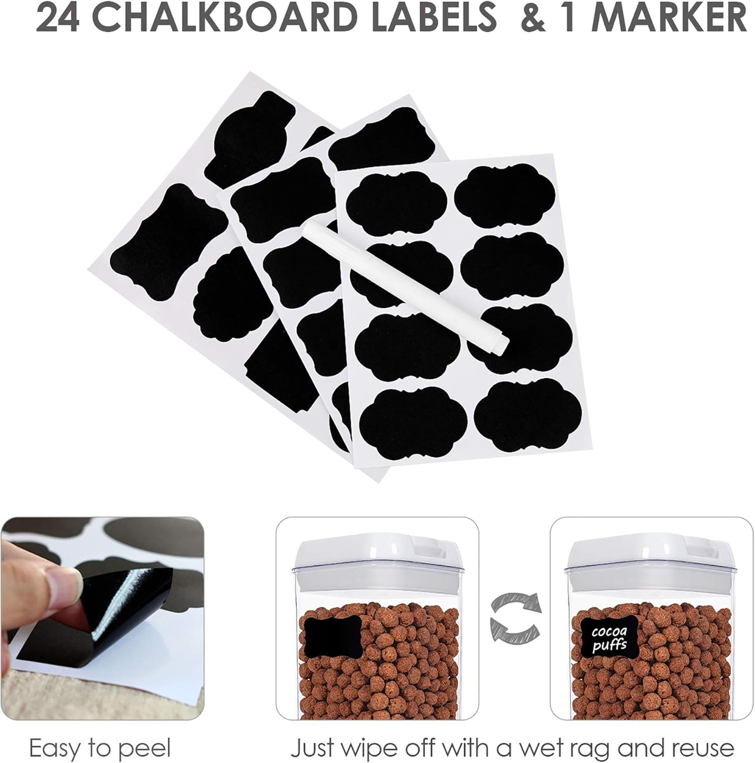 Vtopmart 6 PCS Airtight Food Storage Containers, BPA Free Plastic Snack Cereal Containers with Easy Lock Lids, for Kitchen Pantry Organization and Storage, Include 24 Labels, 1.2L