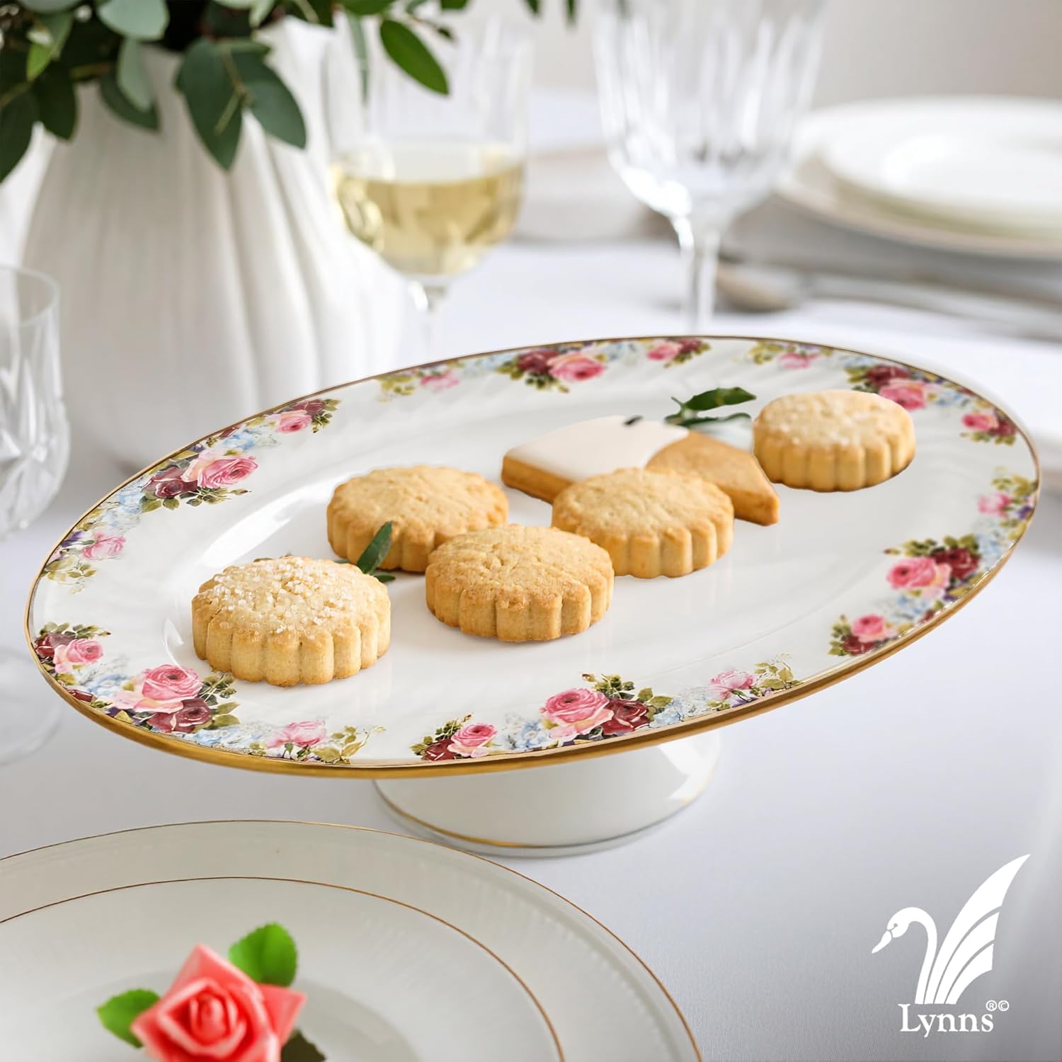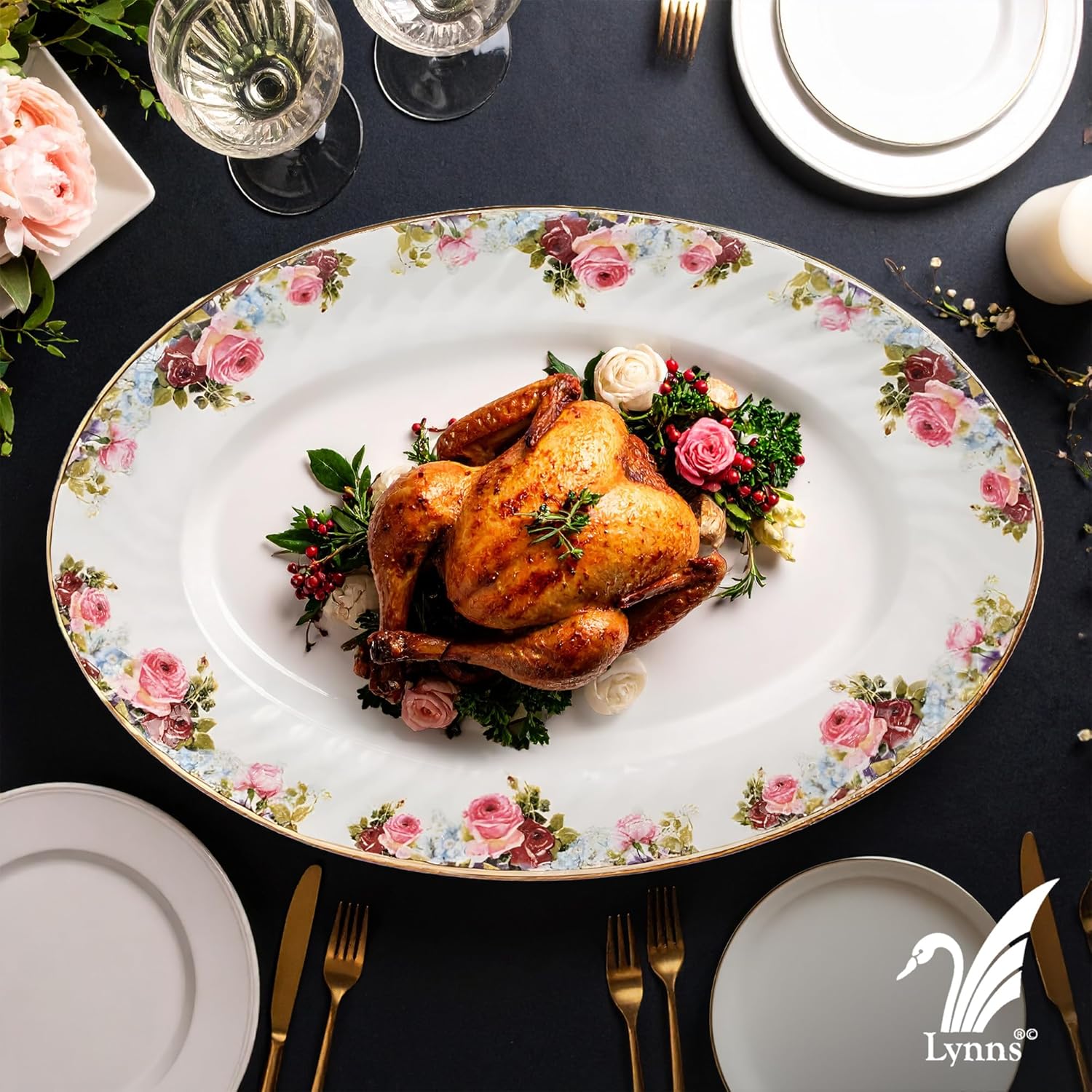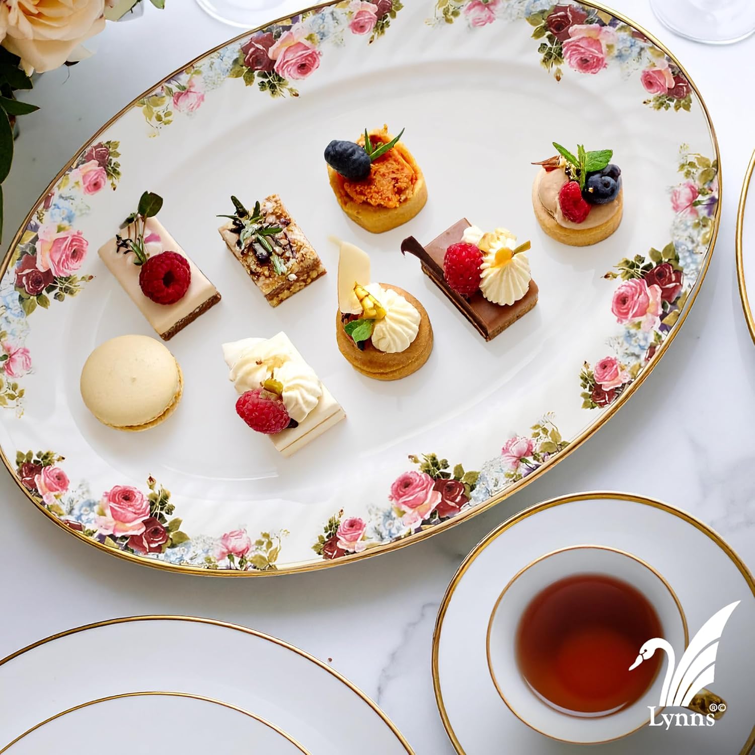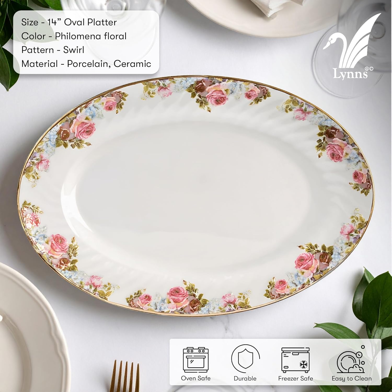 Lynns Paradise Philomena 14-Inch Oval Platter, Set of 2, Pink; Heavy Duty; Chip Resistant; Lead and Cadmium Free; Freezer to Oven Safe up to 500°F