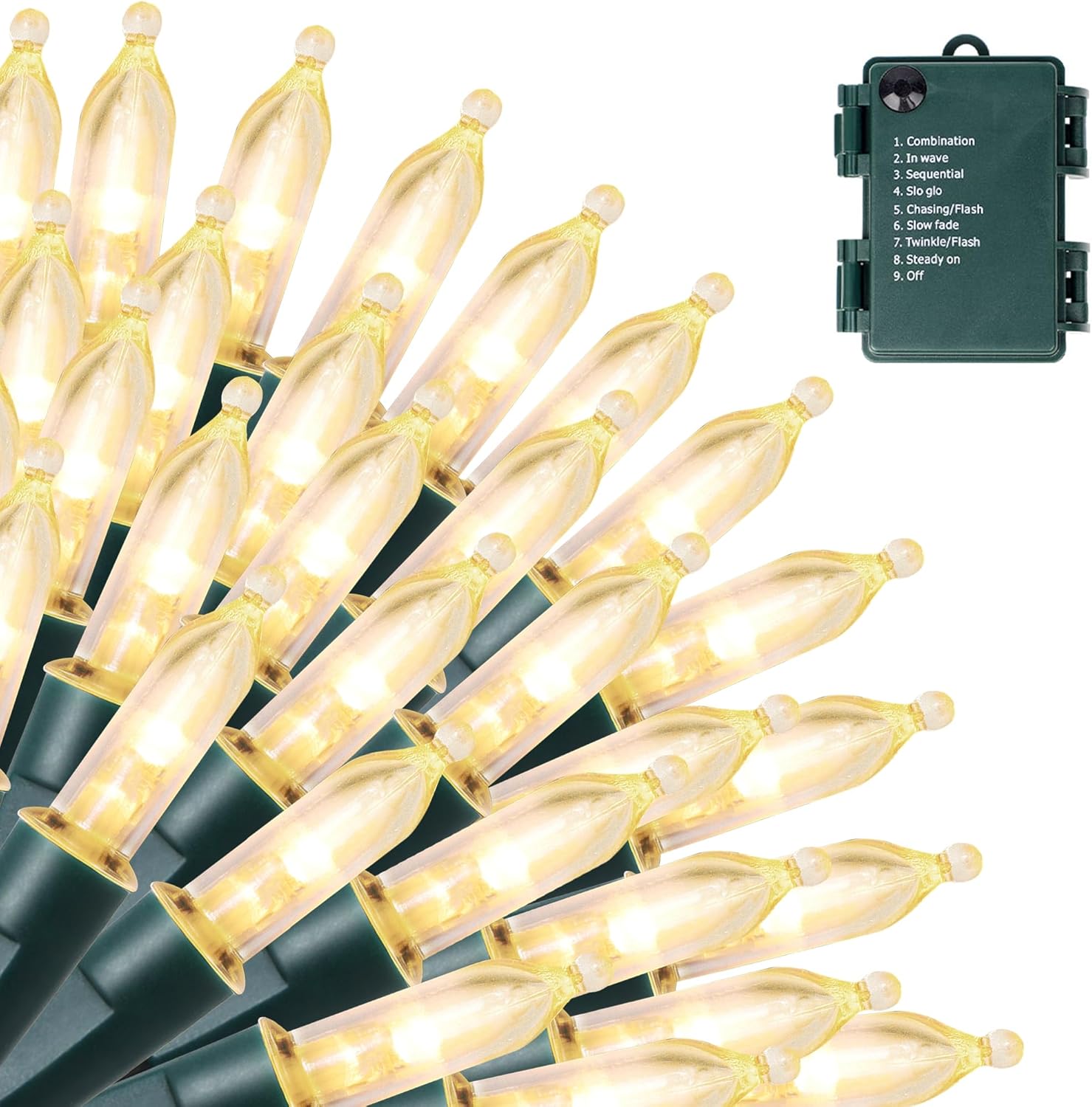 Joliyoou 50 LED Warm White String Lights, 16 Ft Battery Operated Christmas Mini Lights with 8 Lighting Modes, Indoor Outdoor LED Christmas Fairy String Lights with Timer