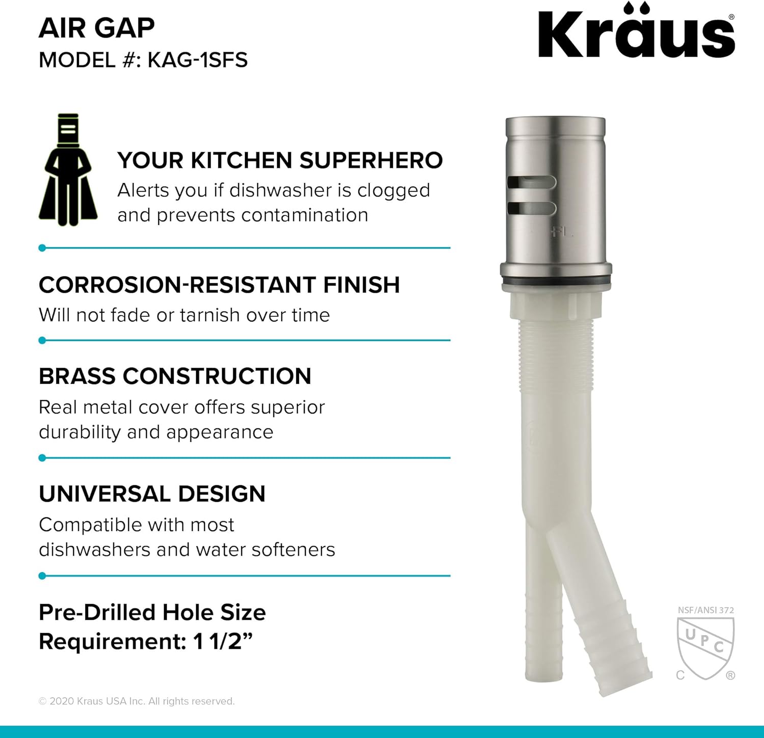 KRAUS Dishwasher Air Gap in Spot Free All-Brite™ Stainless Steel, KAG-1SFS