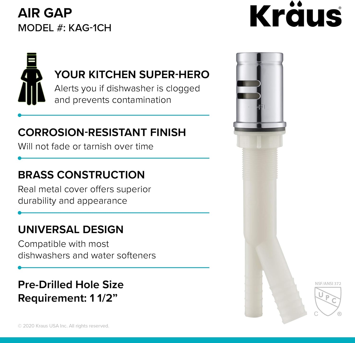 KRAUS Dishwasher Air Gap in Chrome, KAG-1CH