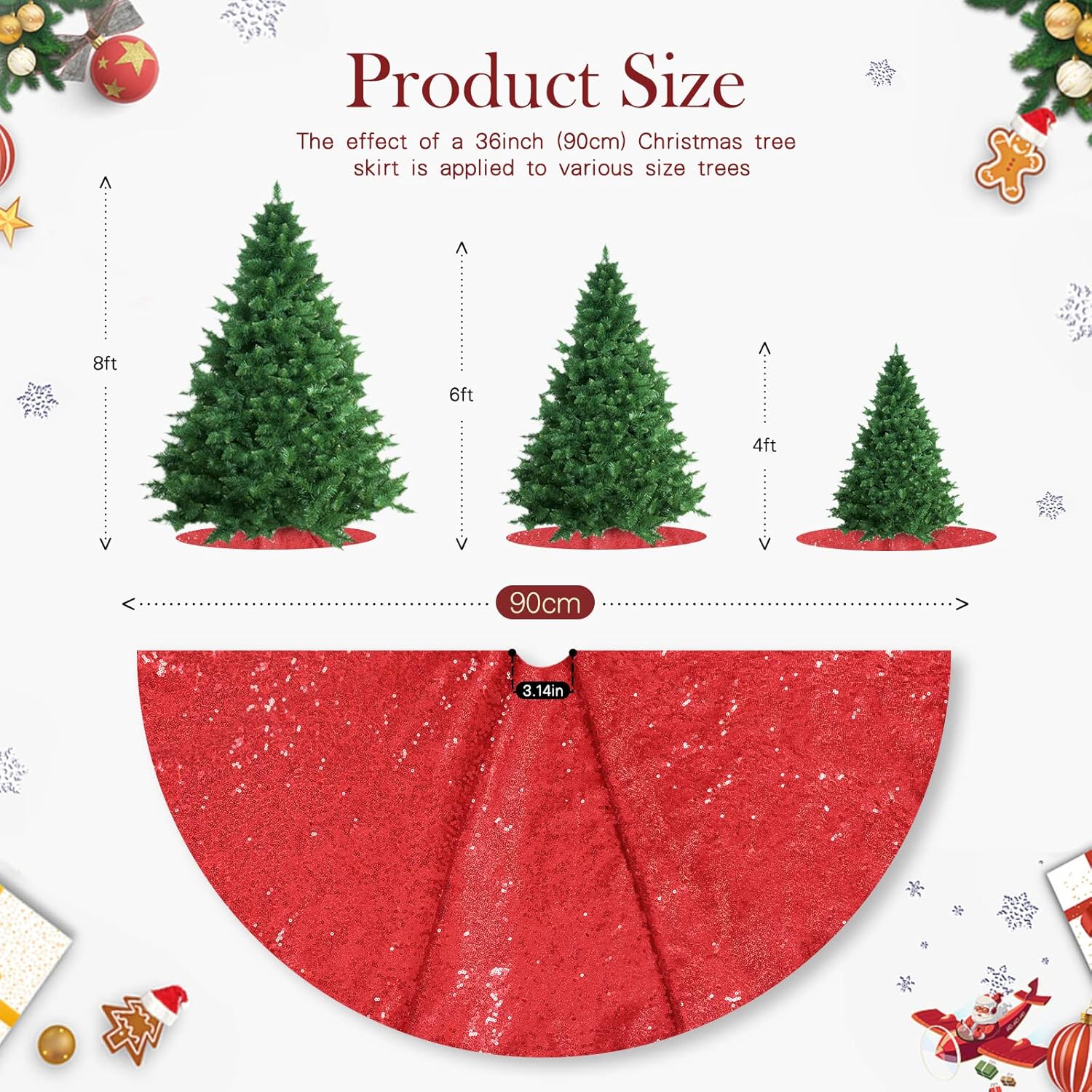 - Red Sequin Tree Skirt: Christmas tree skirt outer diameter is 36 inch and this xmas tree skirt inner diameter is 3.14 inch.The best matching tree is 4ft -6ft.