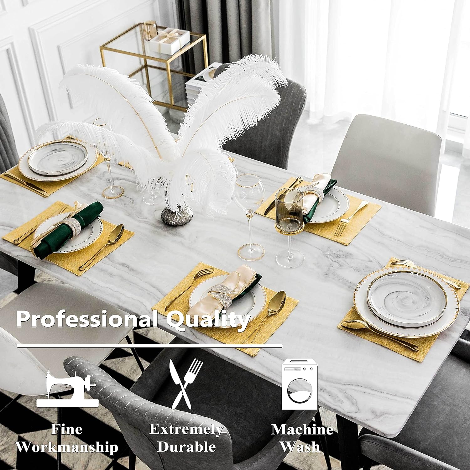 - Washing Instruction: Machine washable placemats, Wash placemat separately from other articles, gentle circle in low. No bleach. Iron to get risk of the crease