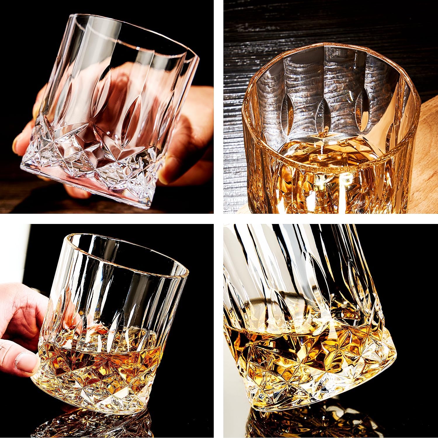 Whiskey Glasses Set of 4,Rock Glasses,11 oz Lead-Free Crystal Bourbon Glass,Old Fashioned Glass for Bourbon,Cognac,Irish Whisky,Personalised Whisky Glass Gift Set for Men,Dad,Brother
