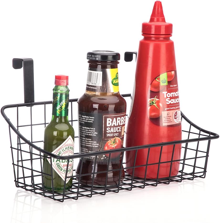 - VIEW ITEMS INSIDE WITH OPEN DESIGN: Open wire design allows you to see the items inside the basket, which makes it easy to find the ingredient, toy, scarf, or any other item you need. Keep your closets, pantry, kitchen cabinets, garage shelves and more organized without sacrificing easy access,Over Cabinet Door Basket.