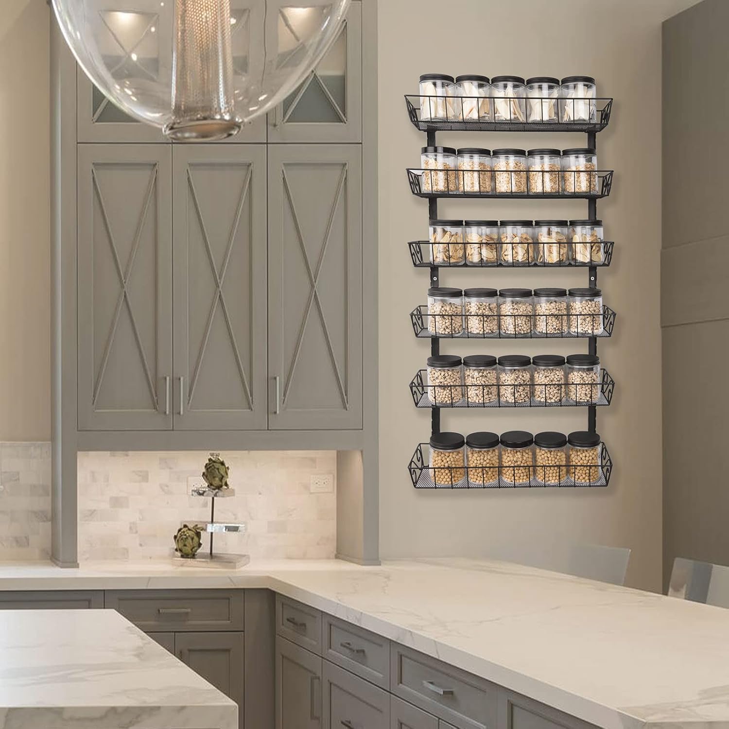 - Basket size fits more items like large bottles, spice jars, cans, food containers and more. Adjustable rack can be used in kitchen, bedroom, living room, bathroom.