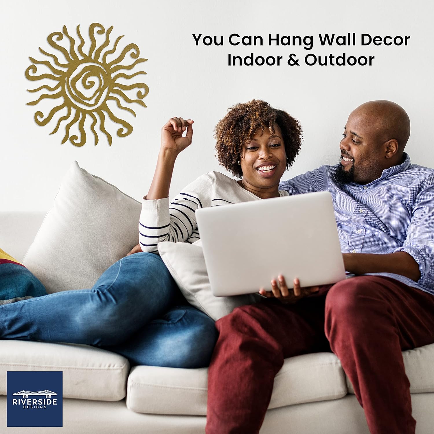 Riverside Designs Wacky Sun Metal Wall Art Indoor/Outdoor Decor - 18" Gold Rust Proof Wall Sculpture - Made in USA - Ideal for Bedroom, Garden, Home, Patio and Farmhouse