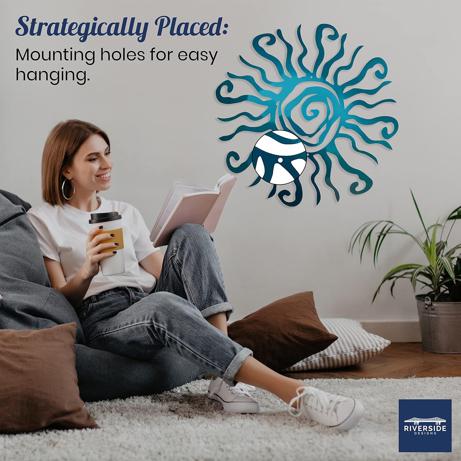 Riverside Designs Wacky Sun Metal Wall Art Indoor/Outdoor Decor - 12" Teal Rust Proof Wall Sculpture - Made in USA - Ideal for Bedroom, Garden, Home, Patio and Farmhouse