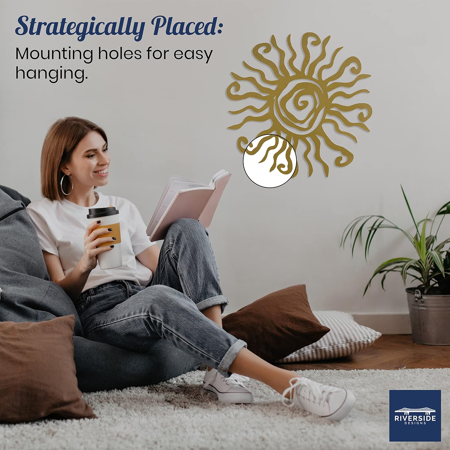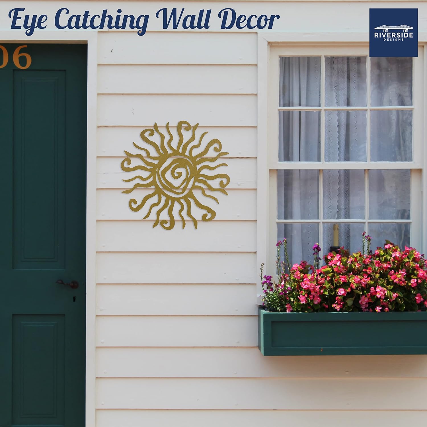 Riverside Designs Wacky Sun Metal Wall Art Indoor/Outdoor Decor - 24" Gold Rust Proof Wall Sculpture - Made in USA - Ideal for Bedroom, Garden, Home, Patio and Farmhouse