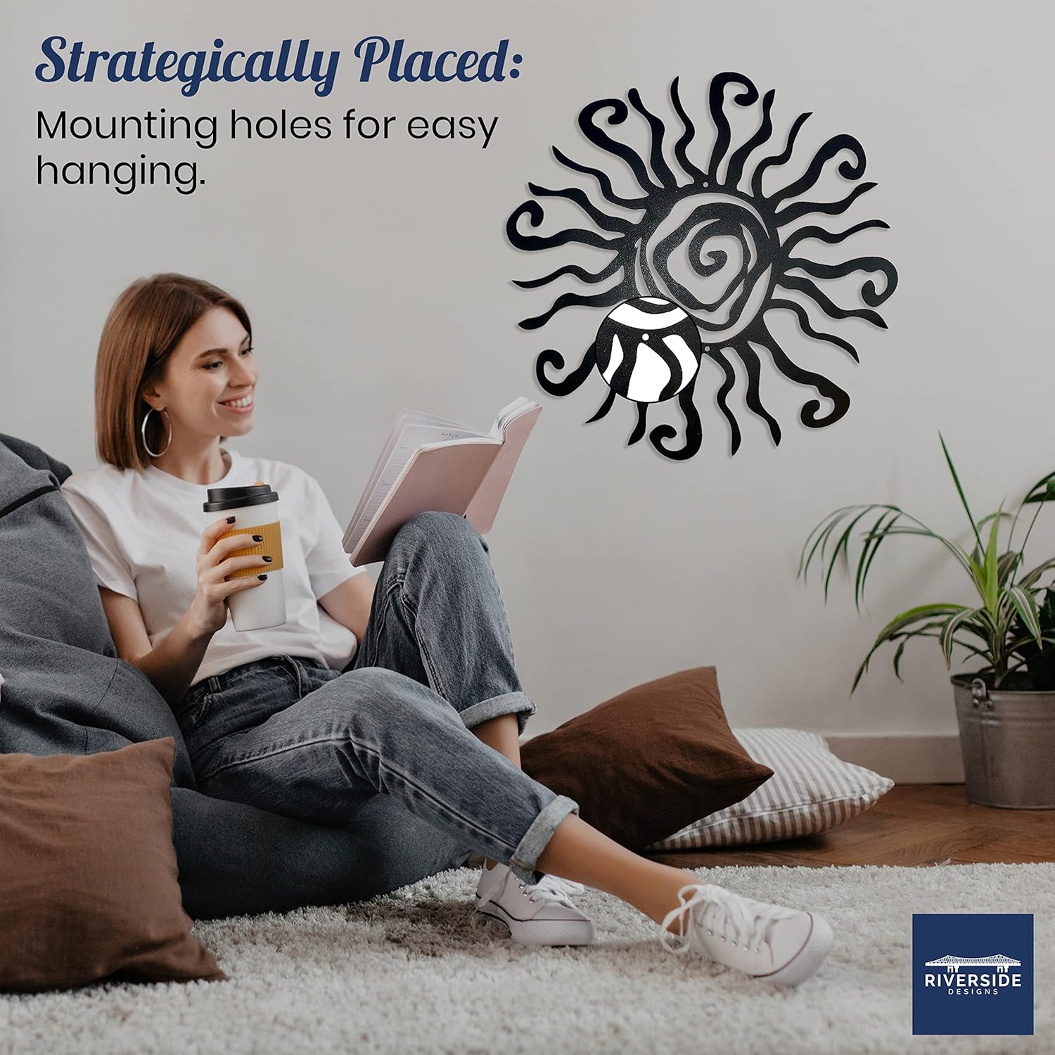 Riverside Designs Wacky Sun Metal Wall Art Indoor/Outdoor Decor - 24" Black Rust Proof Wall Sculpture - Made in USA - Ideal for Bedroom, Garden, Home, Patio and Farmhouse