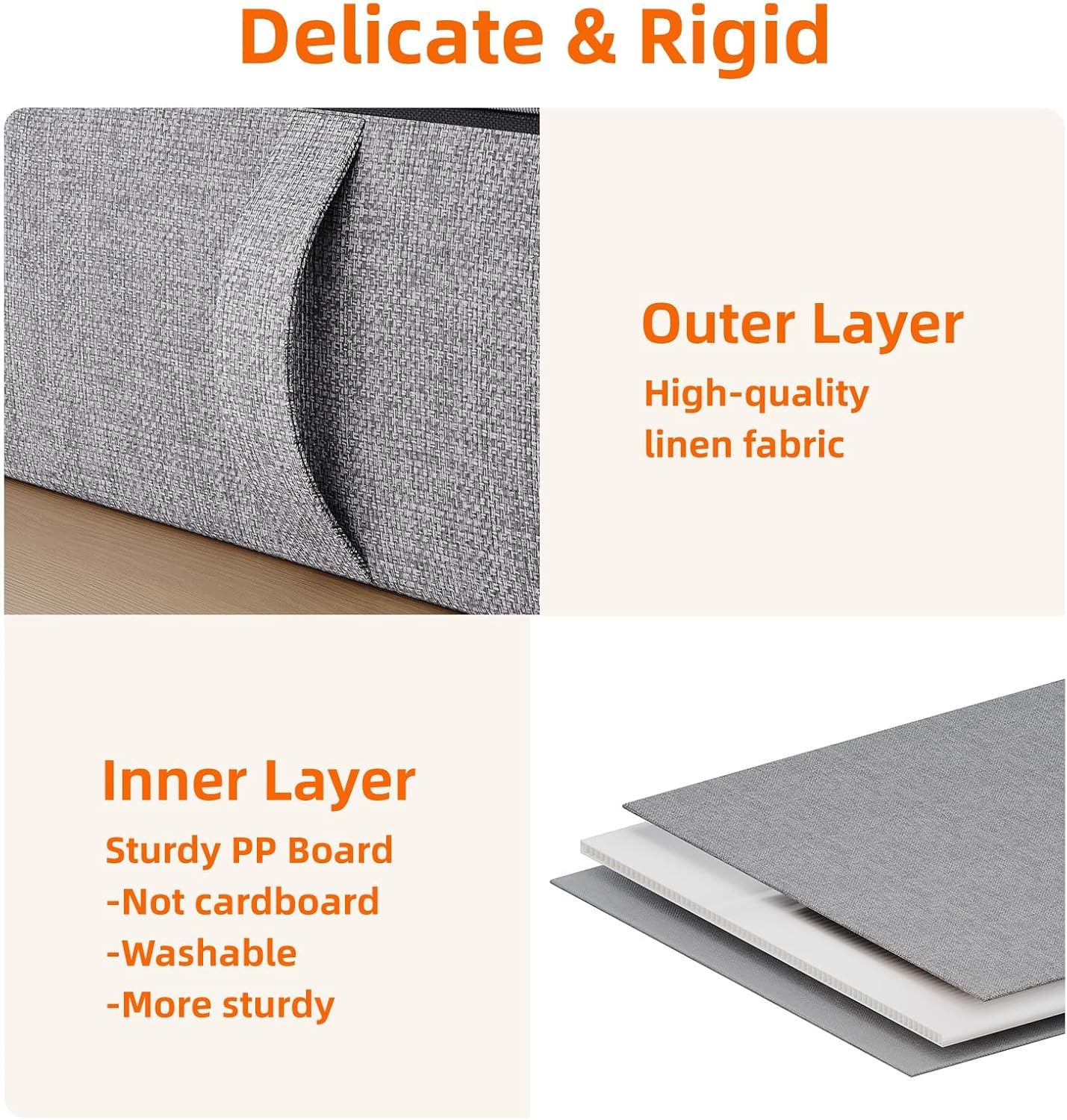 - STURDY STRUCTURE - The under bed storage Bins are made of ultra-thick linen fabric and polypropylene hard board material, no chemical odor, won't scratch the floor, can withstand the test of time.