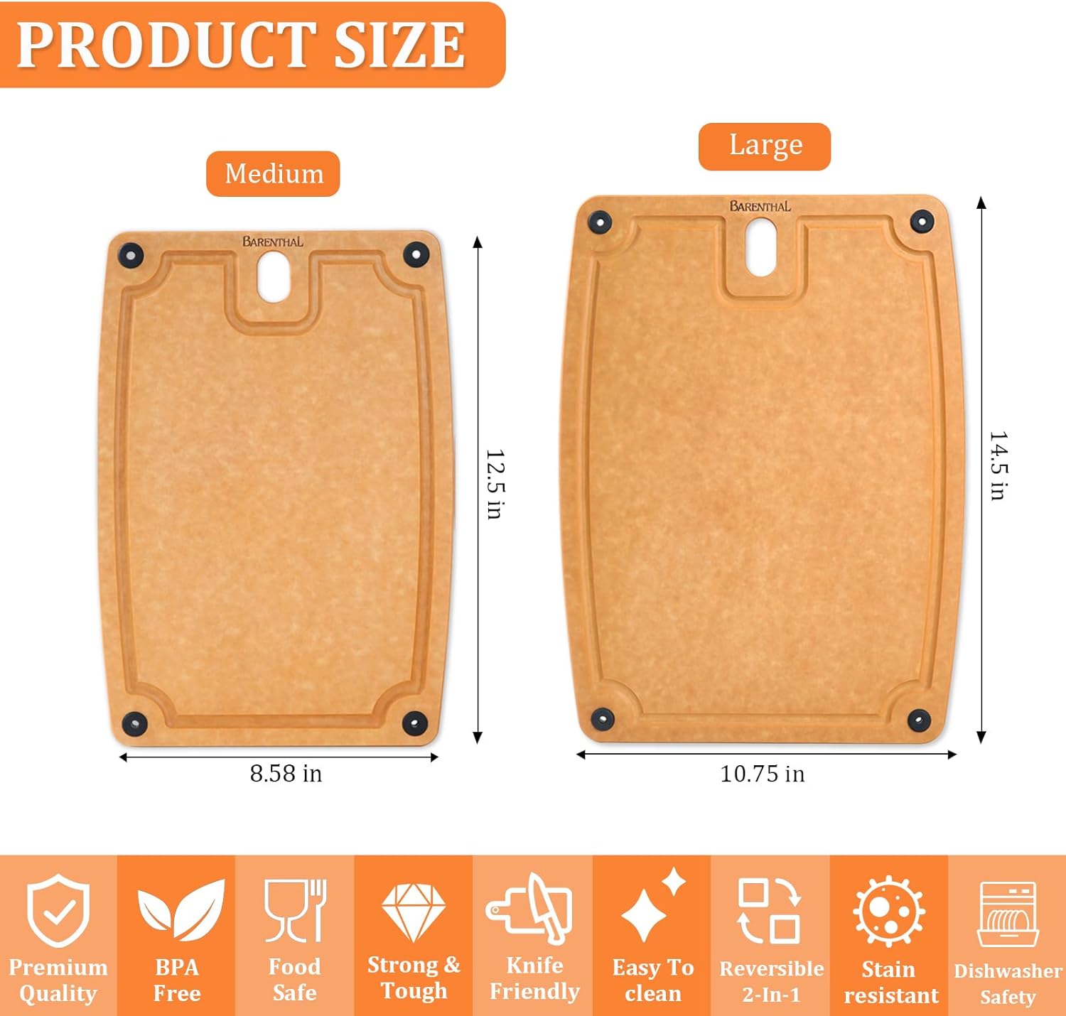 - ★[𝑫𝒊𝒔𝒉𝒘𝒂𝒔𝒉𝒆𝒓 𝑺𝒂𝒇𝒆] : Crafted from natural composite material, this cutting board resists warping and cracking—even in the dishwasher! For longevity, we recommend the quick wash model when use dishwasher. [𝙎𝙩𝙪𝙧𝙙𝙮 𝙘𝙪𝙩𝙩𝙞𝙣𝙜 𝙗𝙤𝙖𝙧𝙙] : thanks to its natural composite material , it makes the cutting board durable, knife friendly, keep new. Not like bamboo/wooden or plastic chopping boards that get moldy、warp and crack after a long time.