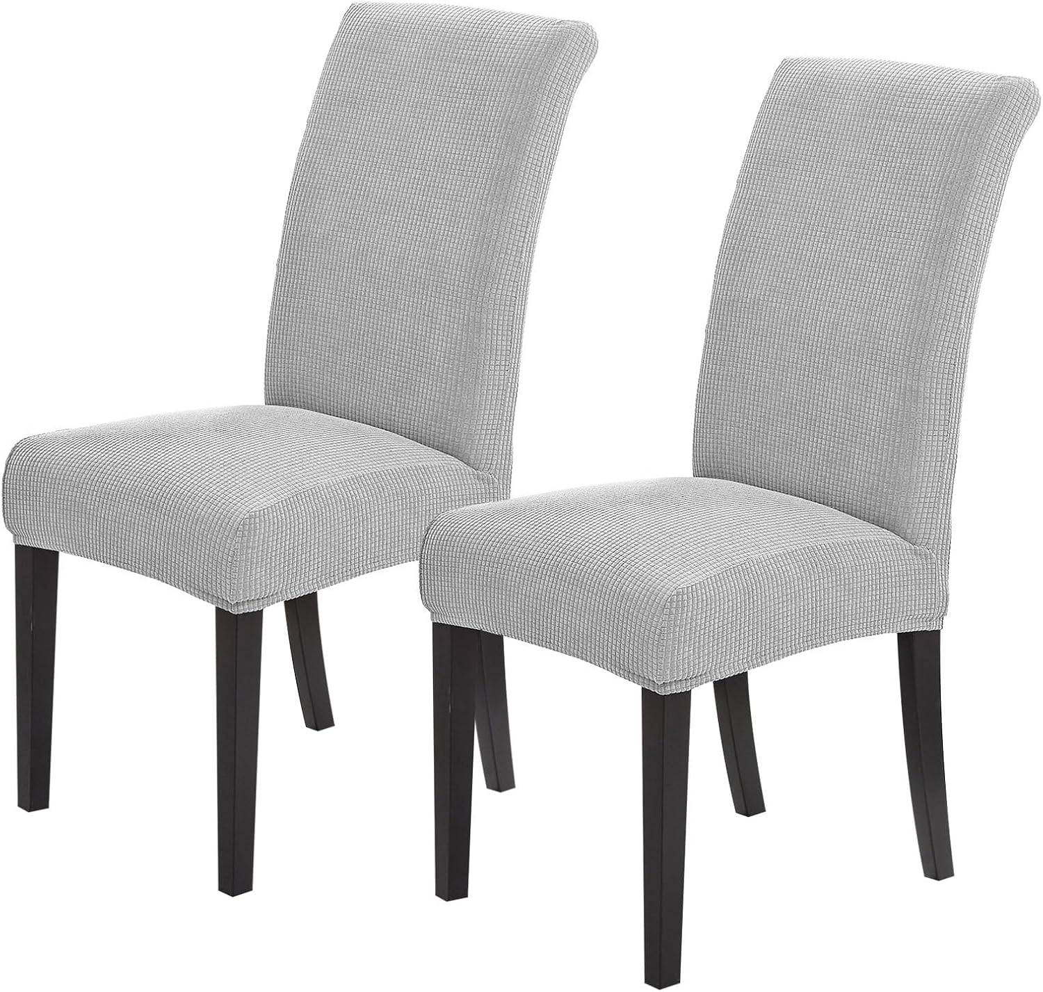 Joccun Chair Covers for Dining Room Set of 2,Dining Chair Slipcovers Stretch Dining Room Chair Covers Seat Protector,Washable Parsons Chair Cover for Home,Hotel,Banquet(Silver,2 Pack)