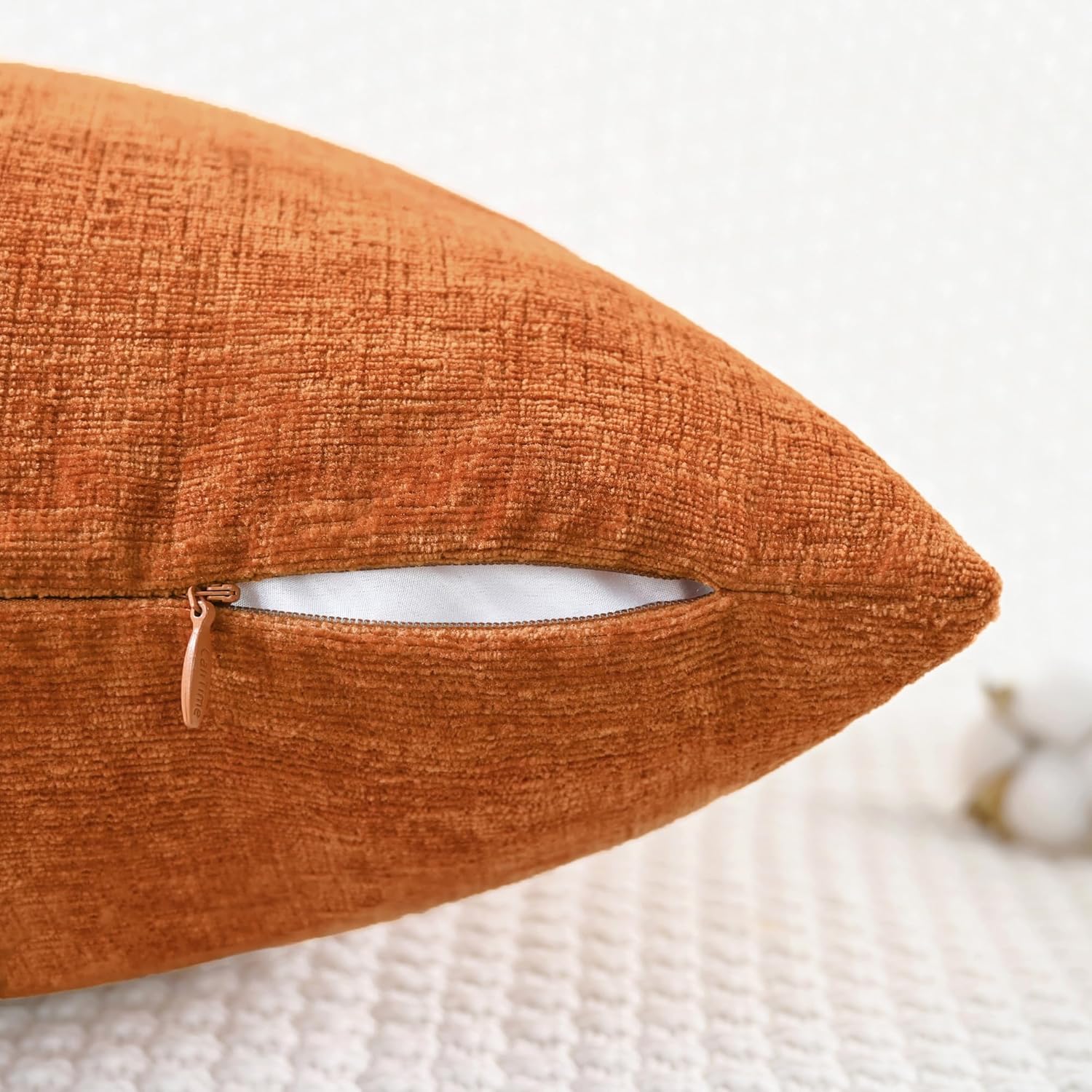 CaliTime Fall Throw Pillow Covers Decorative 16 X 16 Inches Pack of 2 Cozy Chenille Cushion Cases for Couch Sofa Bed Living Room Home Burnt Orange