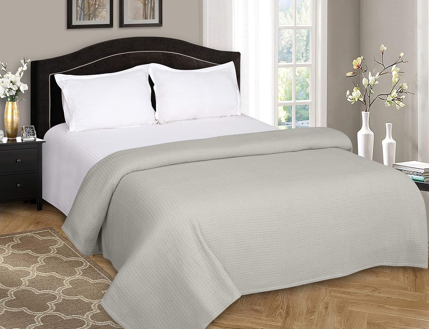 BELIZZI HOME 100% Cotton Bed Blanket, Breathable Bed Blanket Full Queen Size, Cotton Thermal Blankets Full Queen, Perfect for Layering Any Bed for All Season, Light Grey