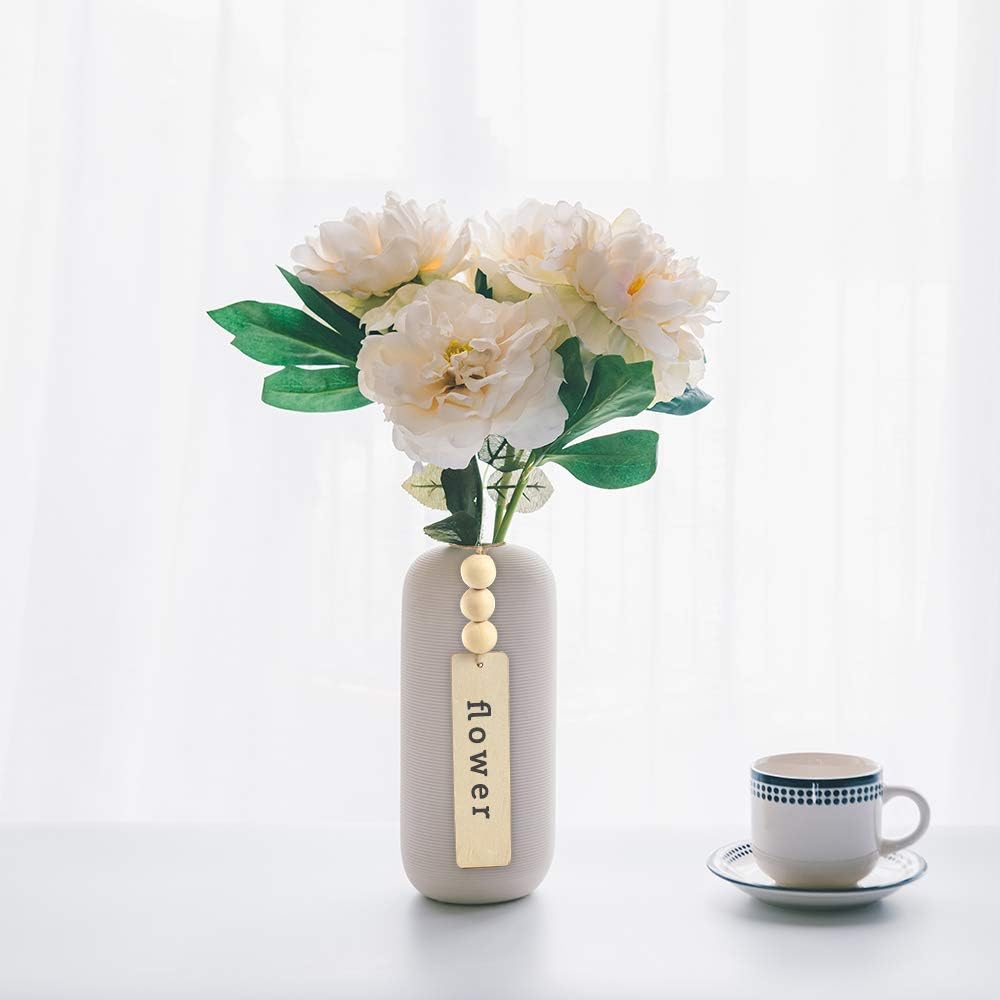 20pcs Wooden Tags with Holes & 50pcs DIY Craft Beads for Wooden Blank Hanging Tags Ornaments with Ropes - Wedding & Birthday Party Decoration