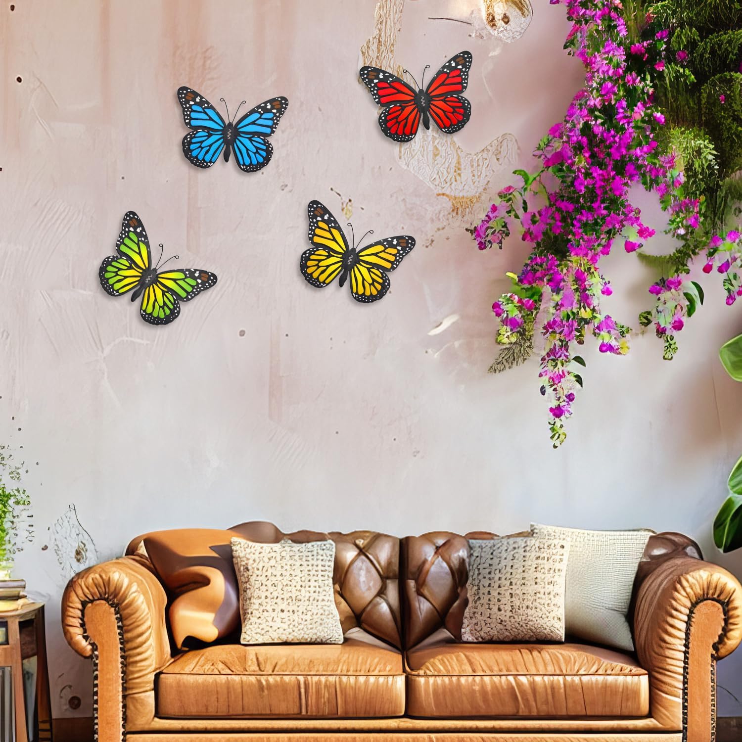 - Package Include: Set of 4 metal butterflies (blue, green, red, yellow). Butterfly size: 9.8''(L)x6.8''(W)