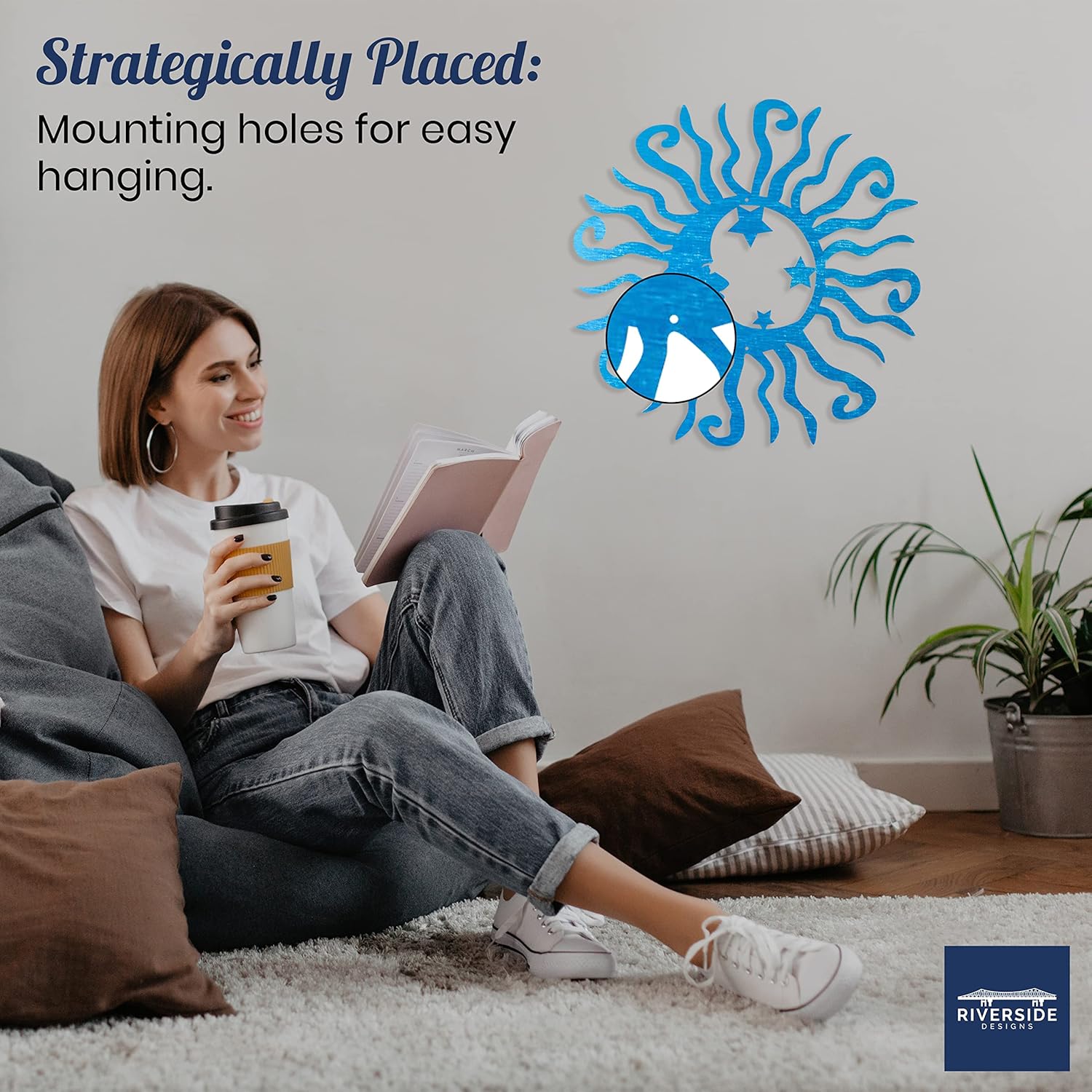 Riverside Designs Wacky Solar Moon Metal Wall Art Steel Outdoor Decor | Heavy-Duty and Waterproof | Made in USA (Teal, 24L x 24W)