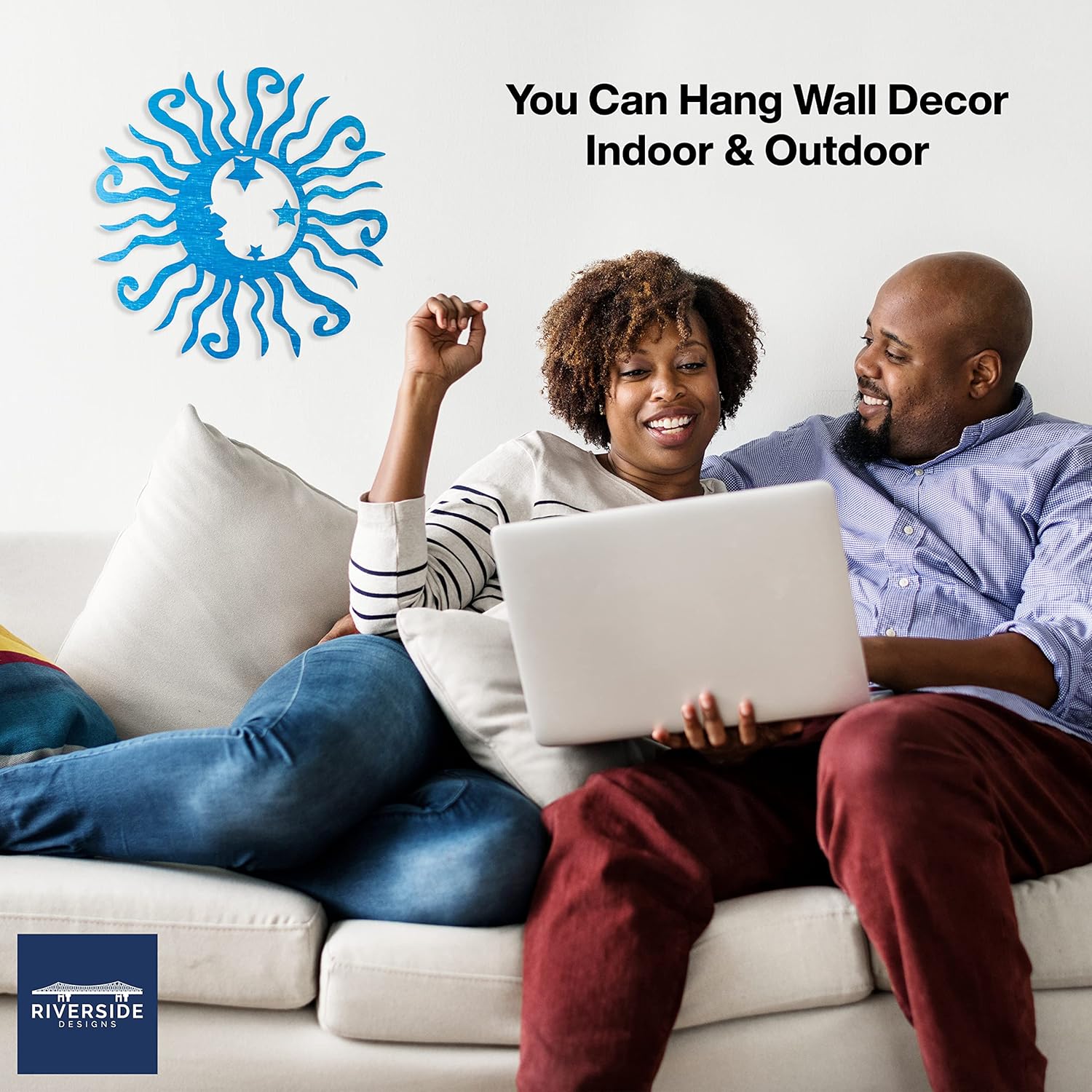 Riverside Designs Wacky Solar Moon Metal Wall Art Steel Outdoor Decor | Heavy-Duty and Waterproof | Made in USA (Teal, 36L x 36W)