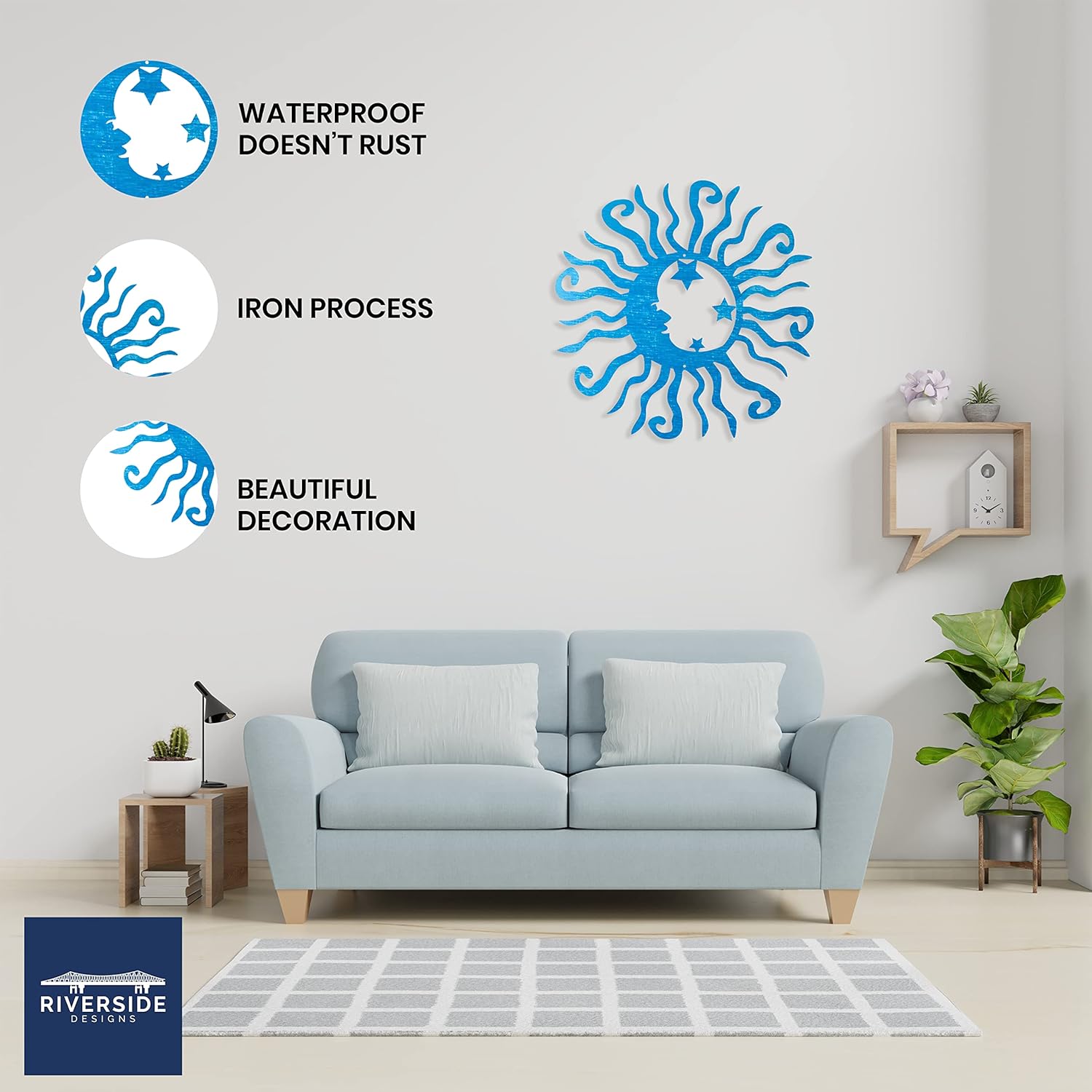 Riverside Designs Wacky Solar Moon Metal Wall Art Steel Outdoor Decor | Heavy-Duty and Waterproof | Made in USA (Teal, 12L x 12W)