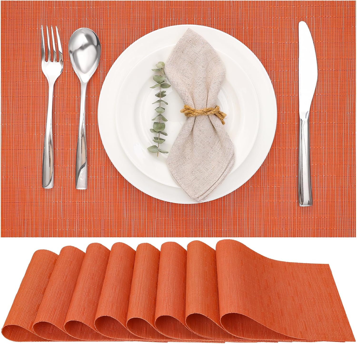 Myir JUN Placemats Set of 8, Vinyl Woven Placemats Place Mats Indoor Set of 8 Washable Table Mats Non-Slip Place mats for Dining Table (Orange, Set of 8)