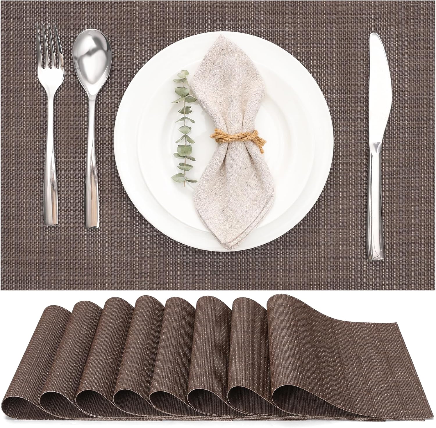 Myir JUN Placemats Set of 8, Vinyl Woven Placemats Place Mats Indoor Set of 8 Washable Table Mats Non-Slip Place mats for Dining Table (Coffee, Set of 8)