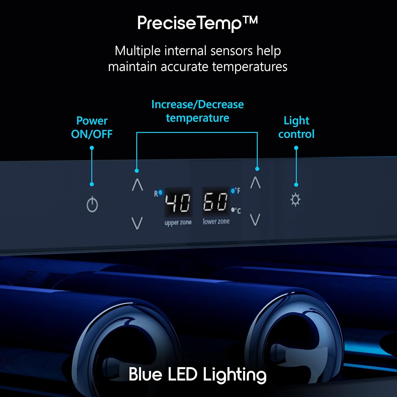 - From cool to cold, two temperature zones give you tons of flexibility when storing red and white and pink wines. Bottle Capacity (750 mL): 46 Total Capacity: 5.3 Cu. Ft. Number of Shelves: 5 Number of Cooling Zones: 2