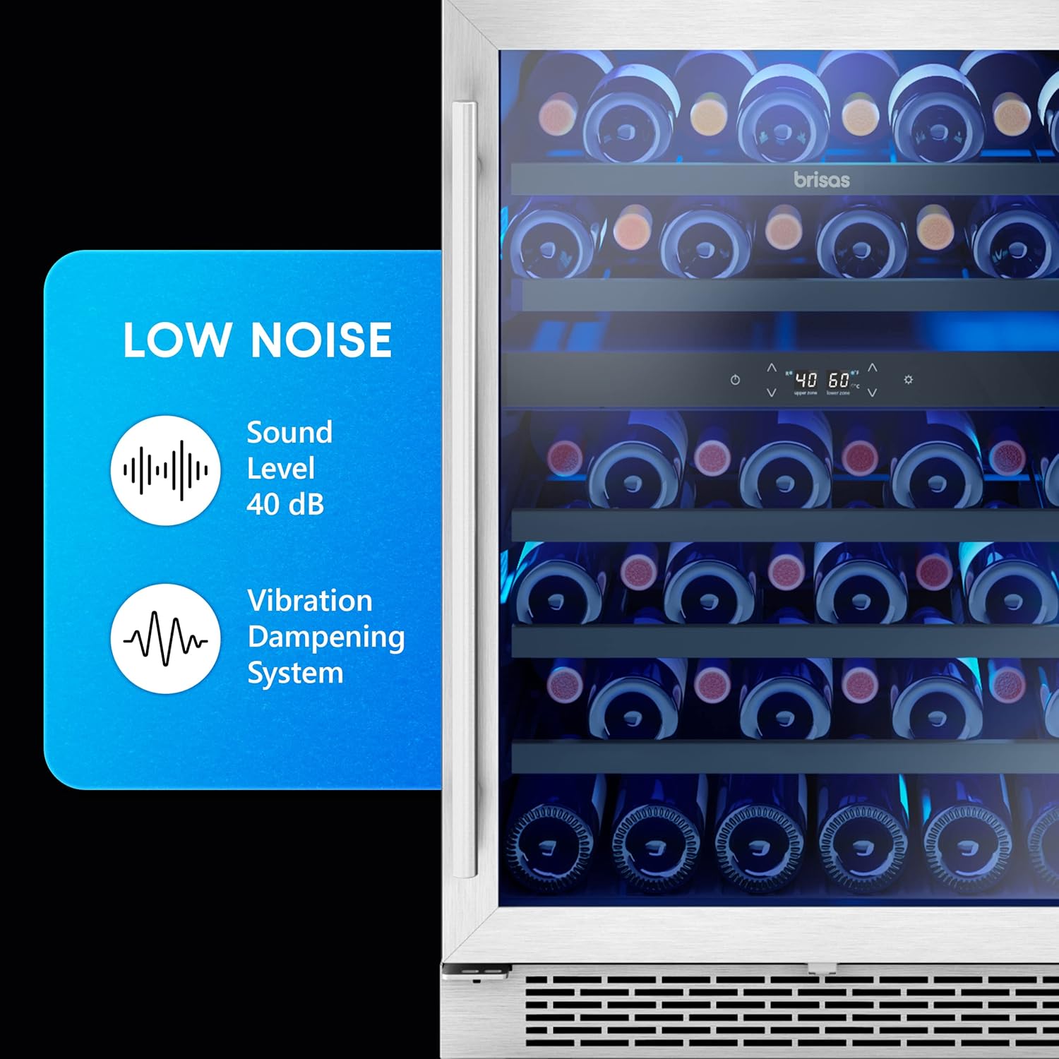 Zephyr BWN24C02AG Brisas 24 Inch Wide 46 Bottle Capacity Built-In or Freestanding Wine Cooler with Dual-Pane Door - Stainless Steel