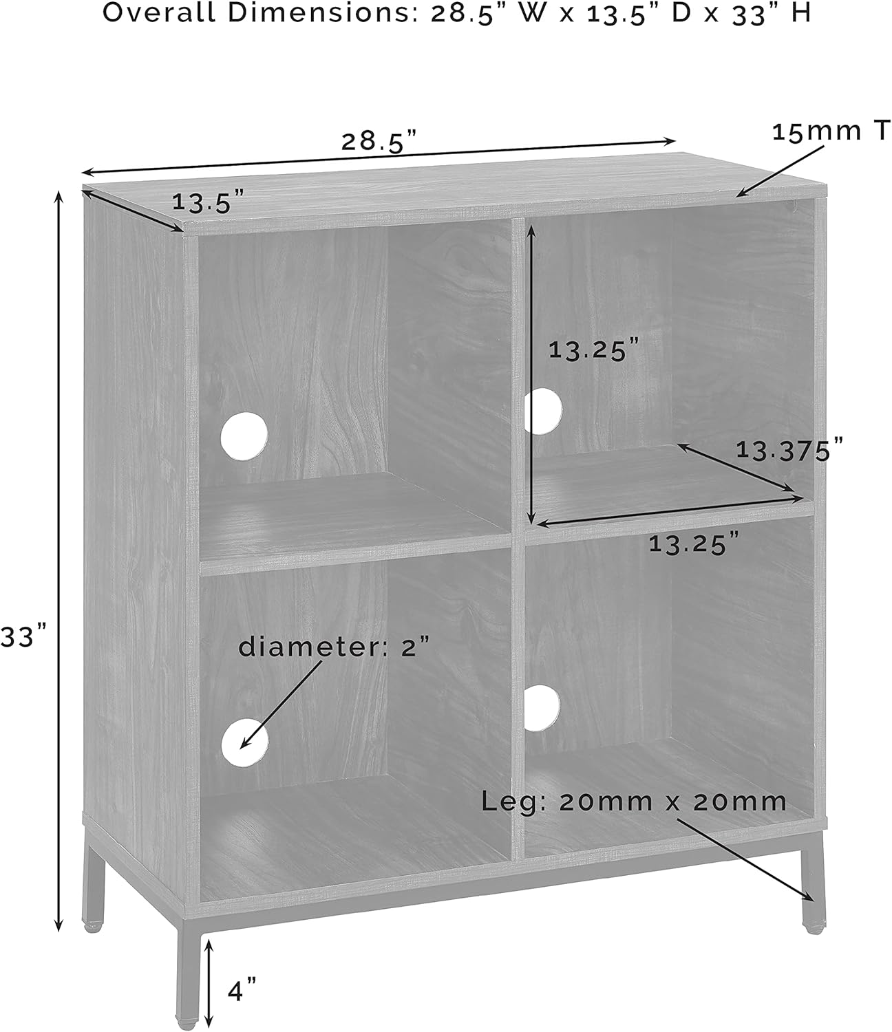 Crosley Furniture Jacobsen Storage Cube Bookcase and Record Player Stand with Vinyl Records Holder, Brown Ash